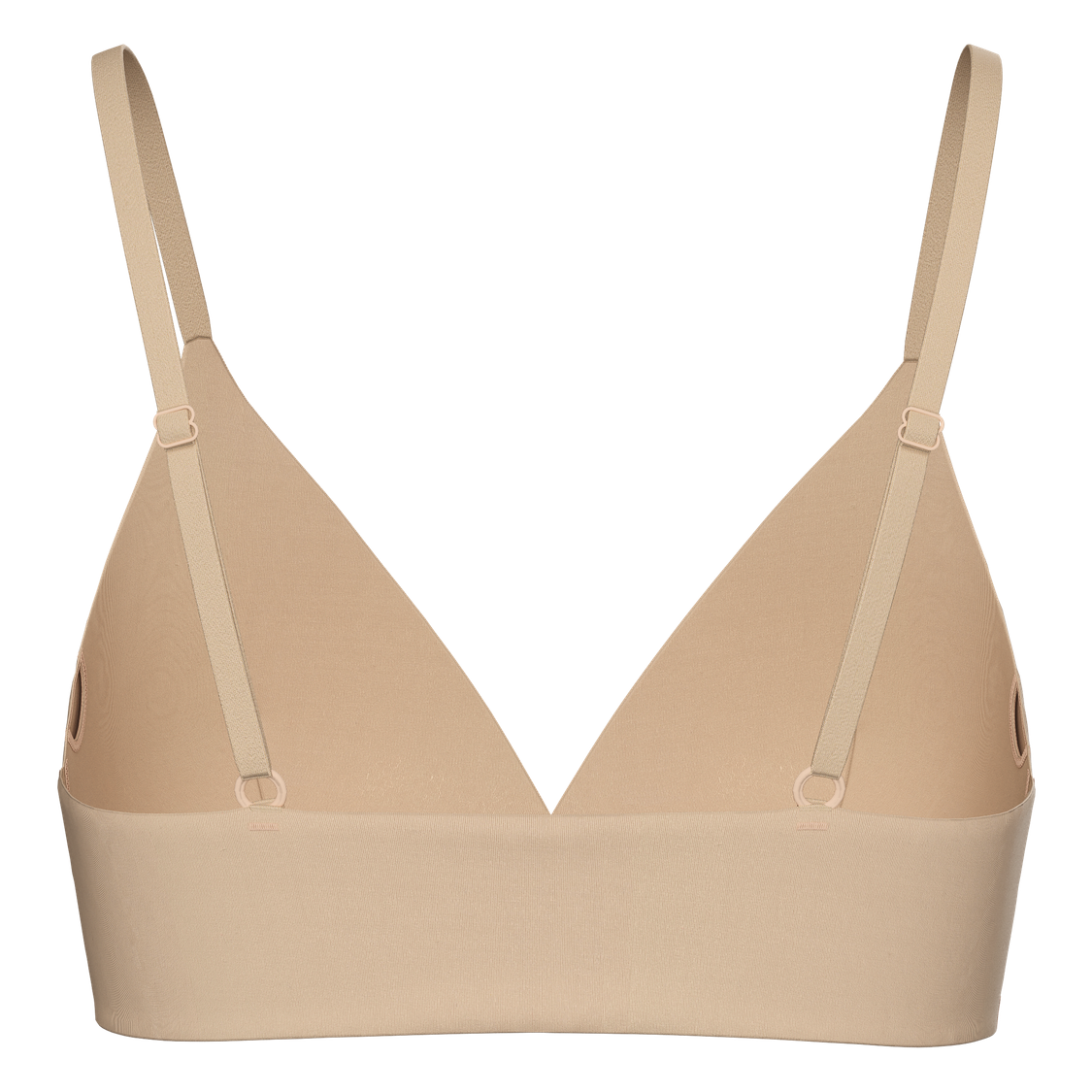 Denne trekants-bh har justerbare stropper og en blød pasform uden knapper, perfekt til daglig brug. Den har aftagelige polstrede skåle og elastisk materiale, der følger kroppens bevægelser.