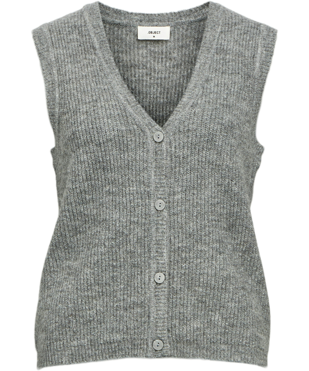 Diana V-Neck Knit Vest Medium Grey Melange fra Object