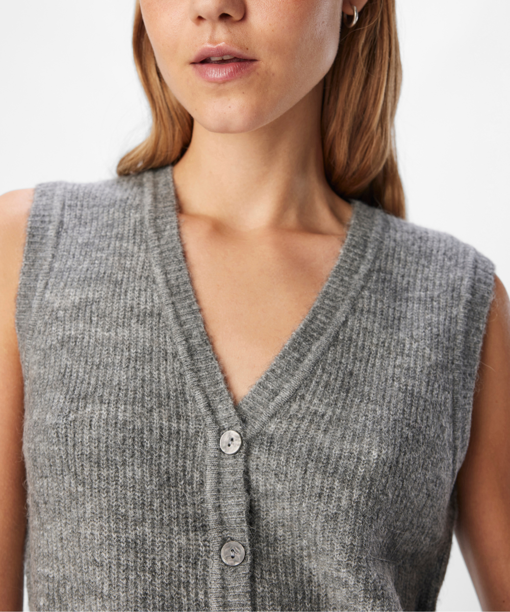 Object Diana V-Neck Knit Vest Medium Grey Melange NOA25