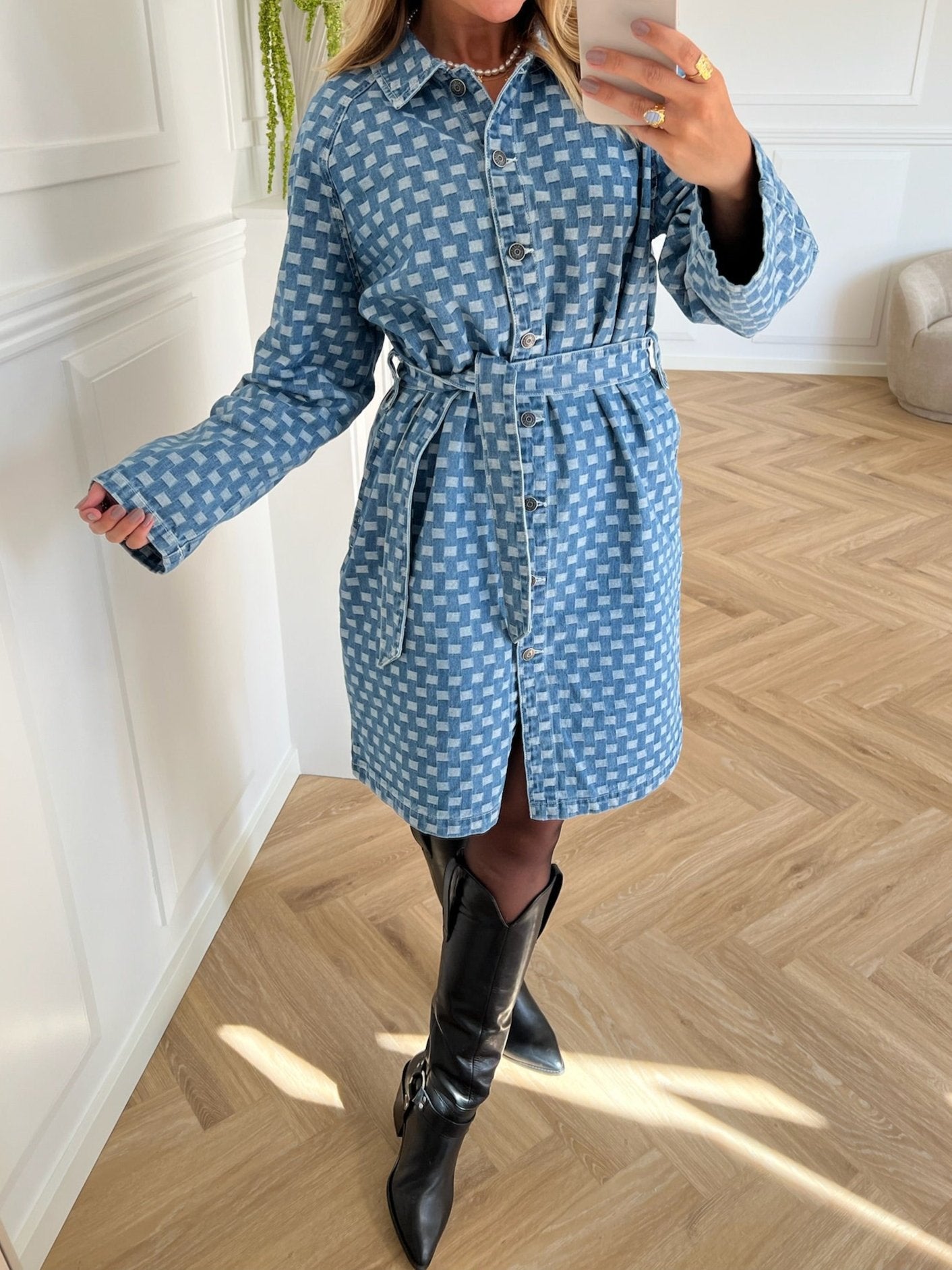 Object Hedda LO L/S Kjole Medium Blue Denim