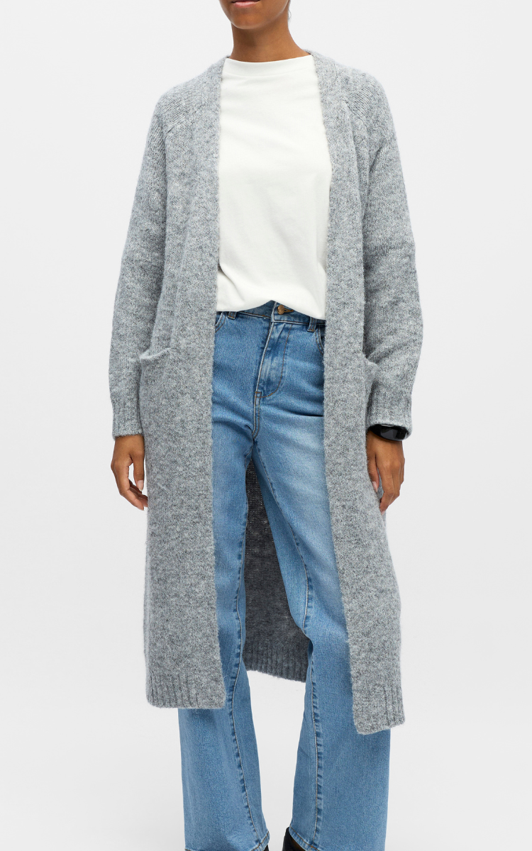 Object Milu LS Long Knit Cardigan Medium Grey Melange NOA25