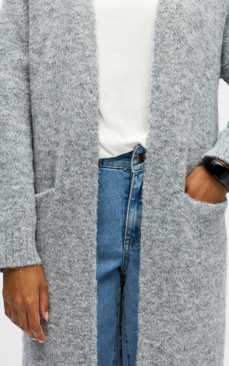 Milu LS Long Knit Cardigan Medium Grey Melange fra Object