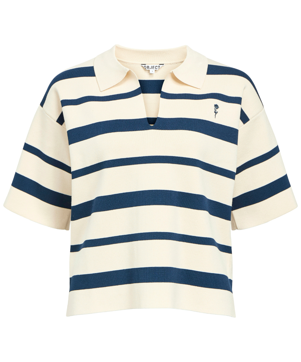 Object Uta SS Knit Polo Bluse White Sand/Legion Blue