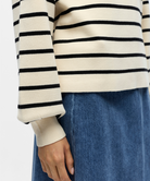 Reynard LS Puff Sleeve Strik Sandshell/Black fra Object