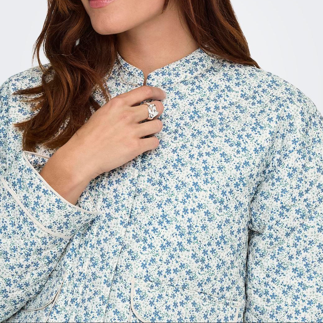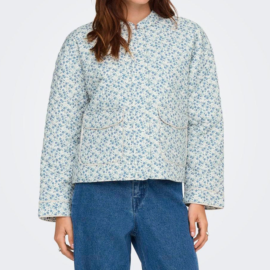 Only Hallie Quilted Jakke Cloud Dancer/Blue Ditsy NOS26