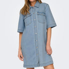Belle SS Button Kjole Light Blue Denim fra Only