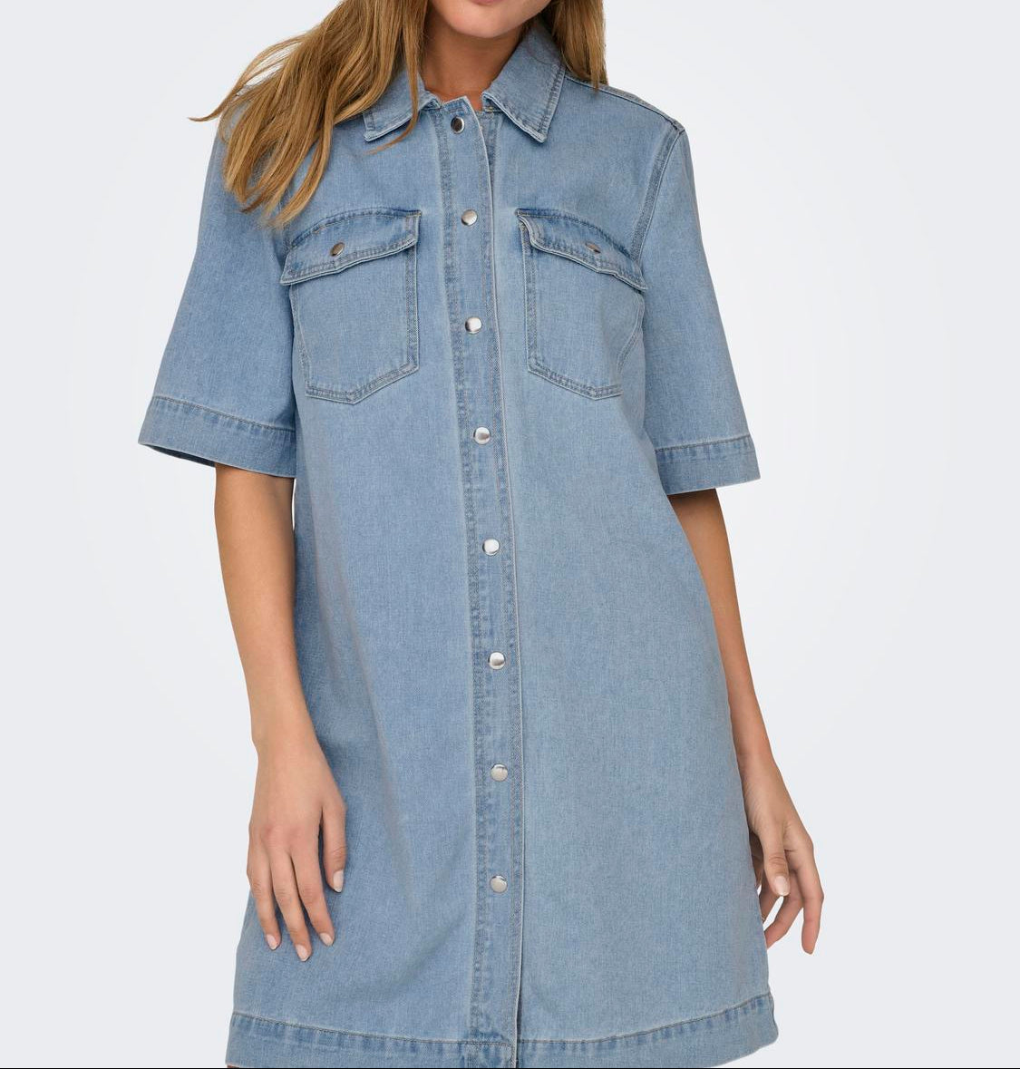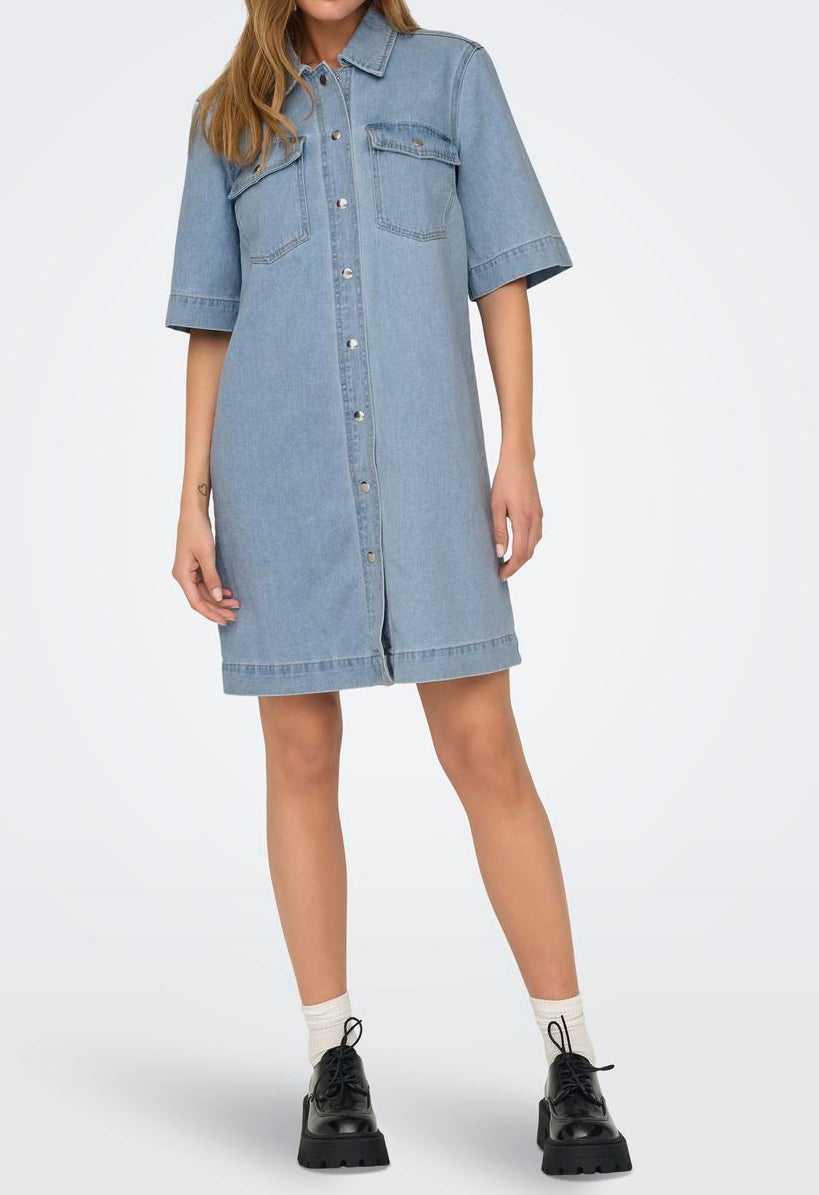 Only Belle SS Button Kjole Light Blue Denim NO26
