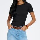Denne s/s o-neck top har en rund hals og korte ærmer, der giver et enkelt og klassisk udtryk. Dens cropped længde og standard pasform gør den nem at kombinere med både jeans og nederdele og passer til alle årstider.