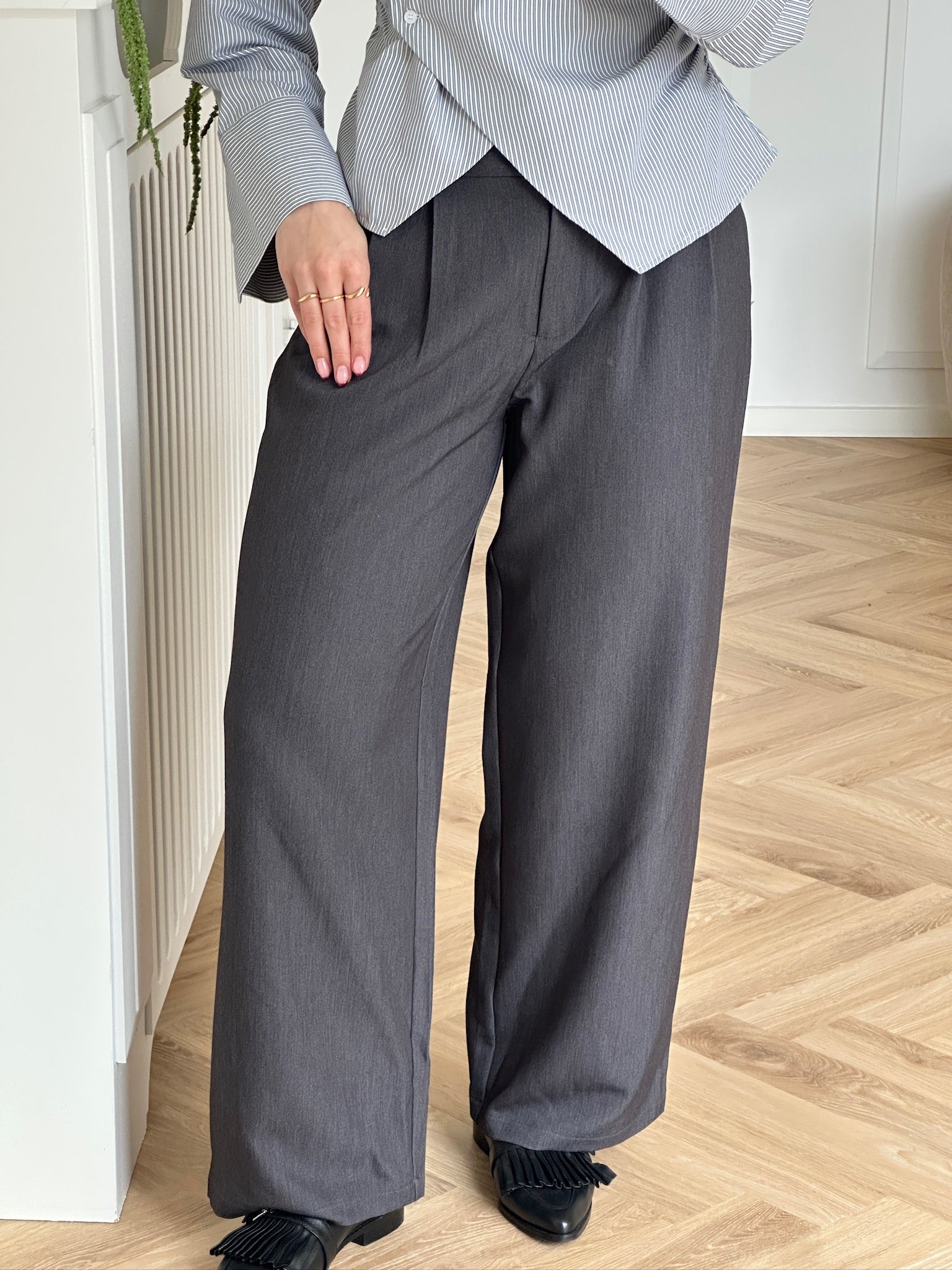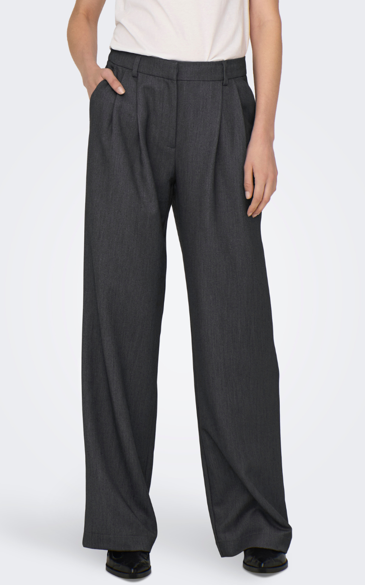 Only Hattie HW Pleat Straight Bukser Dark Grey Melange NOA25
