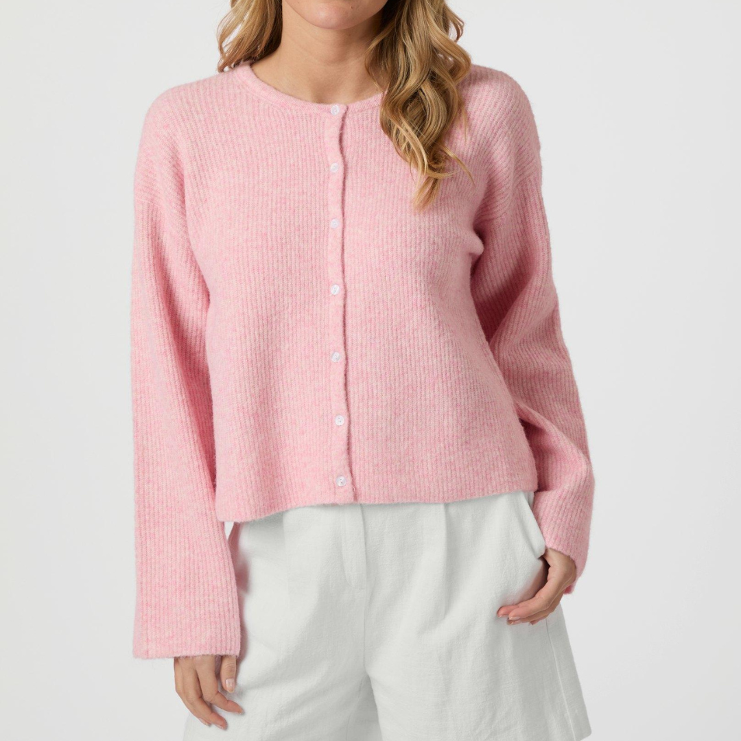 Pieces Silly LS Puff Knit Cardigan Roseate Spoonbill NOA25