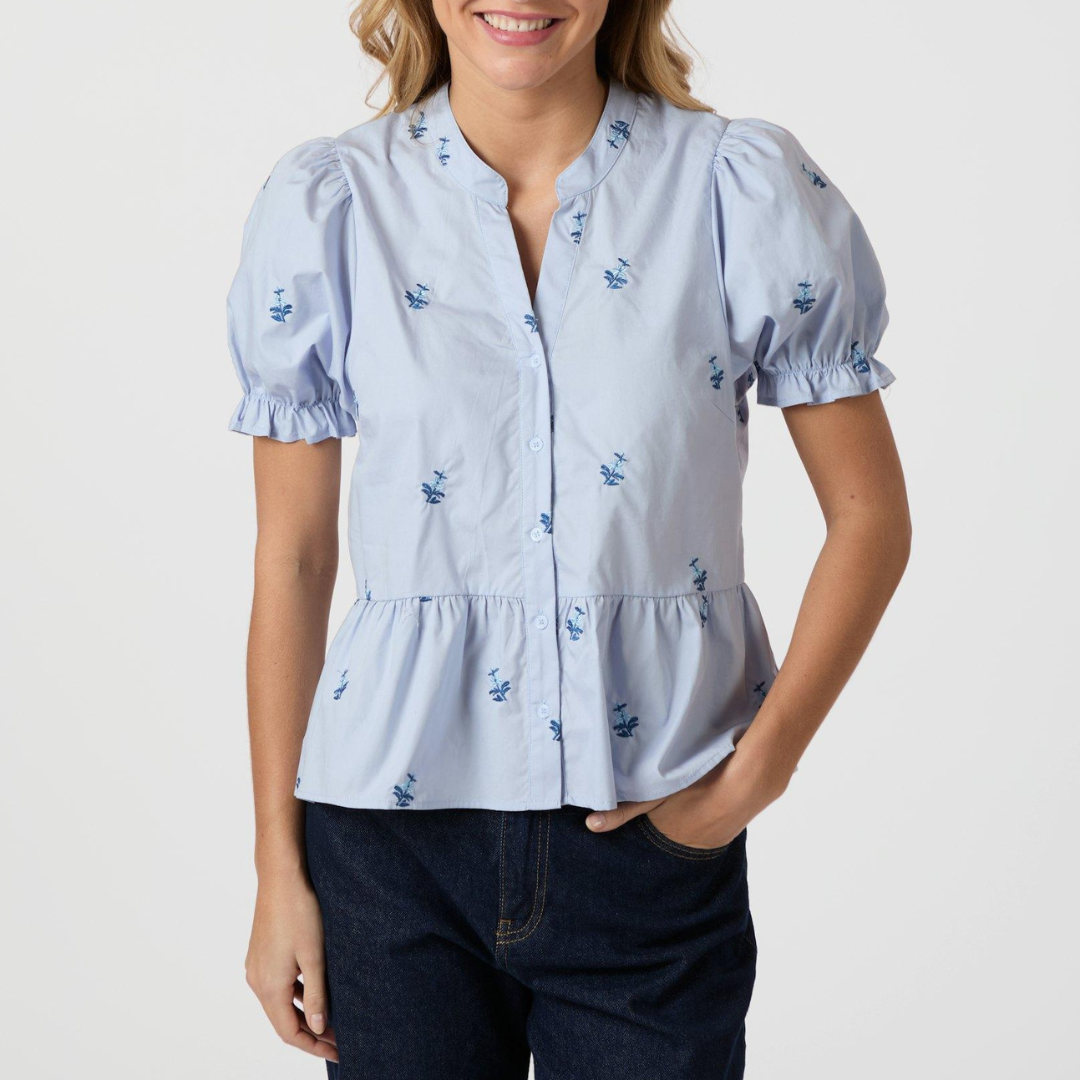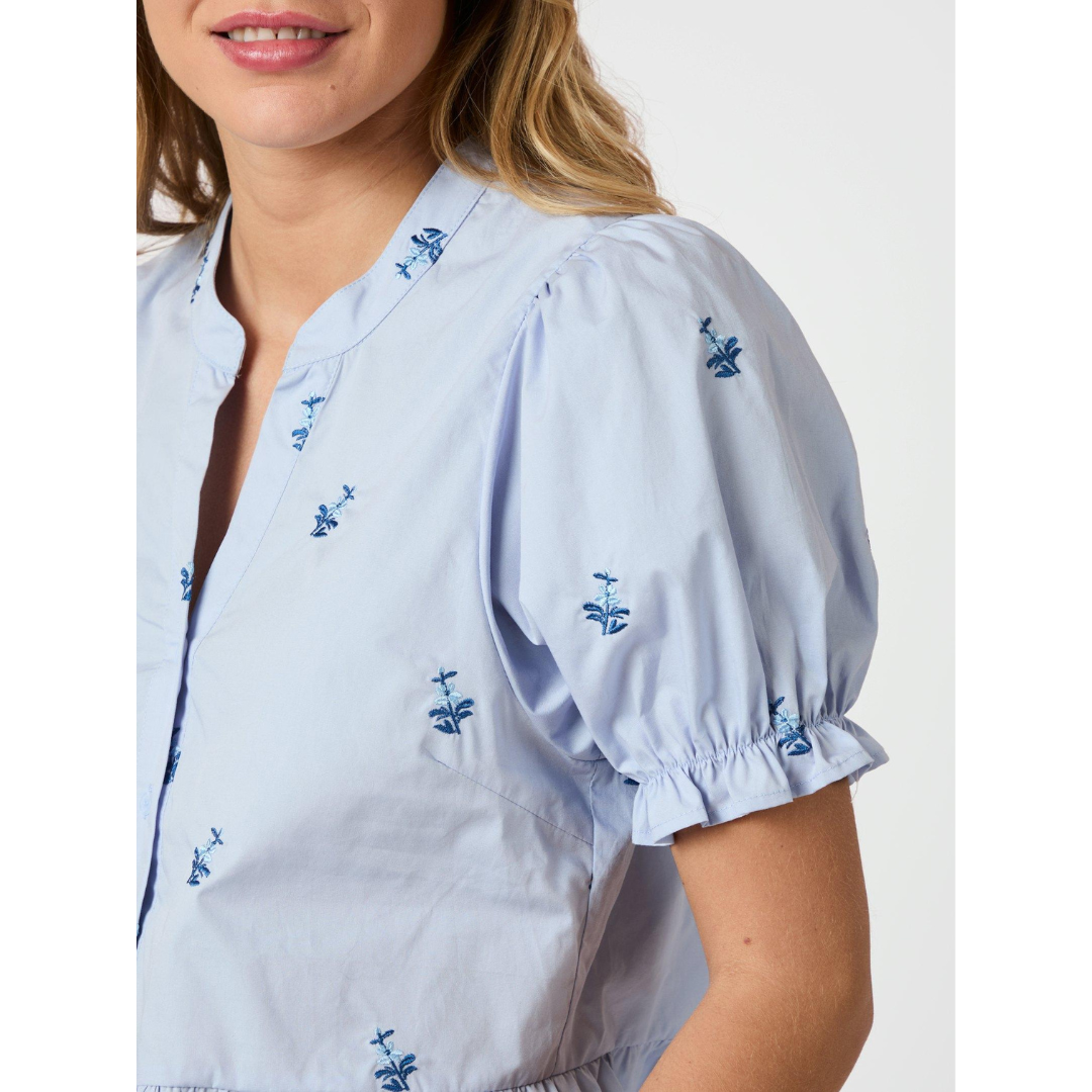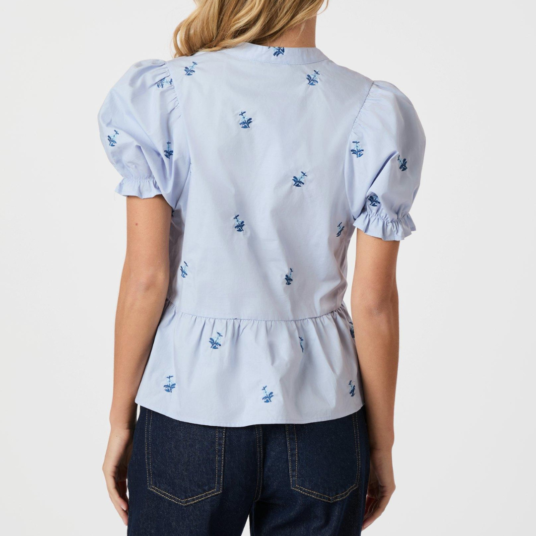 Savy Embroidery Bluse Light Blue fra Neo Noir