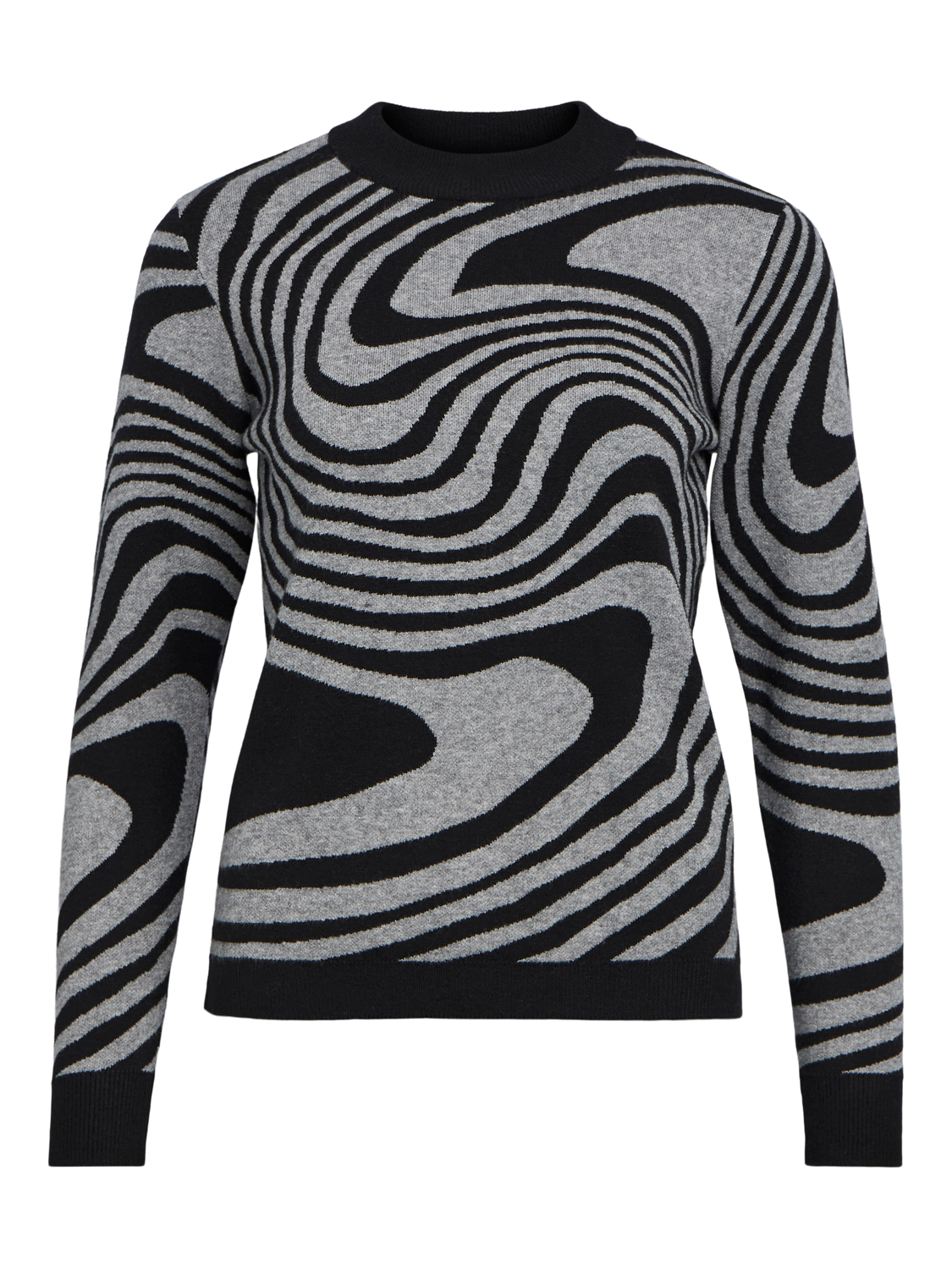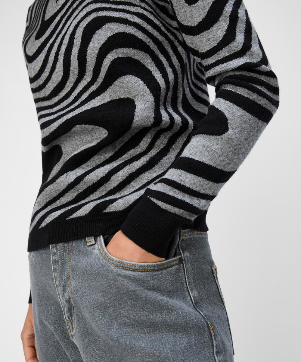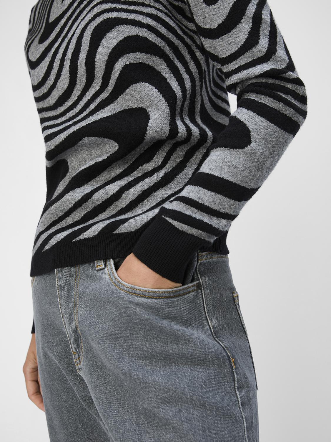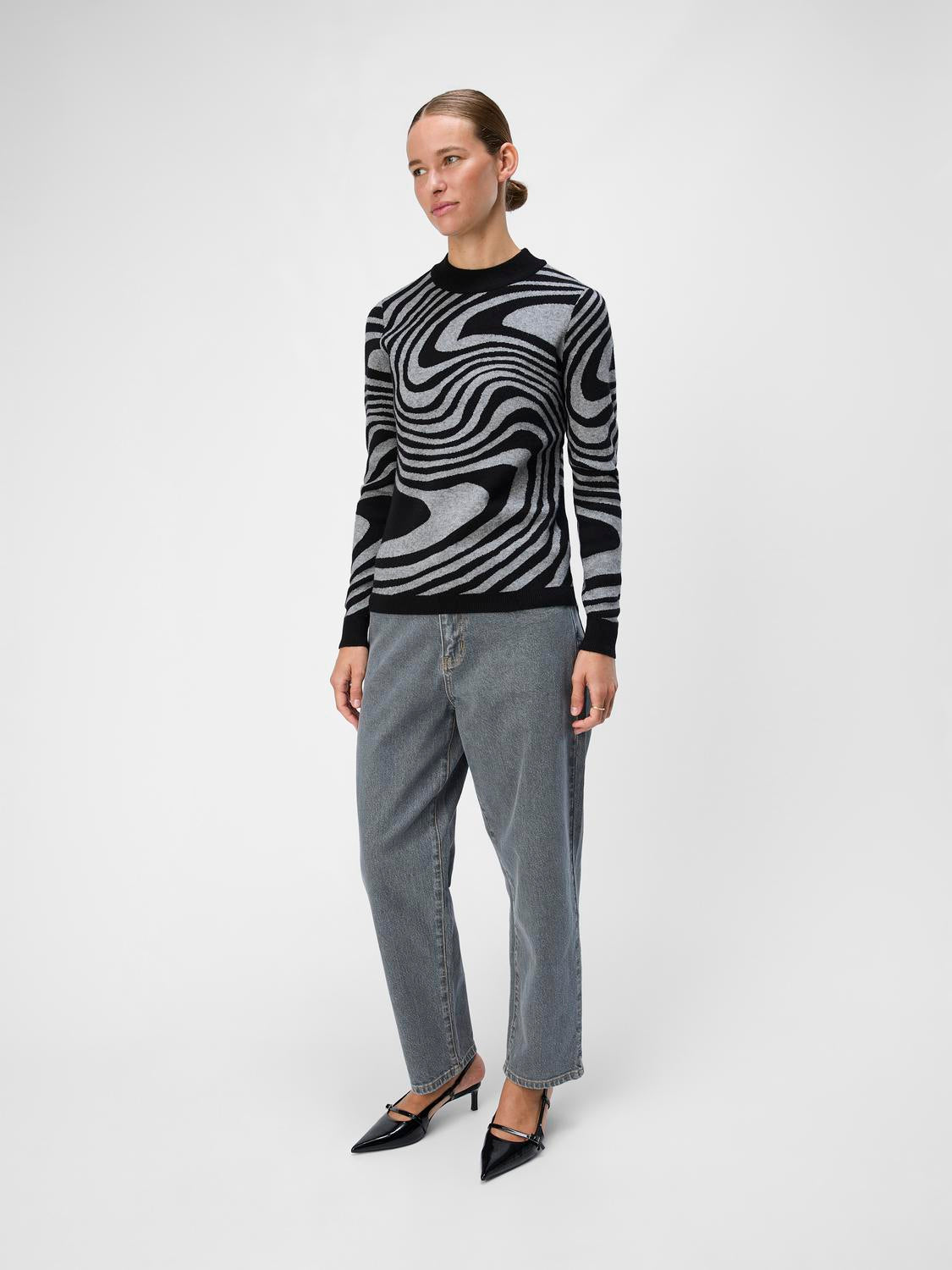 Object Ray LS Knit Strik Black/Medium Grey Melange
