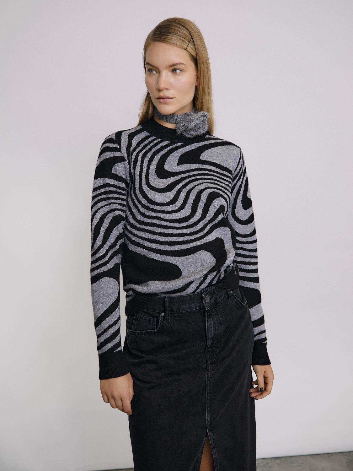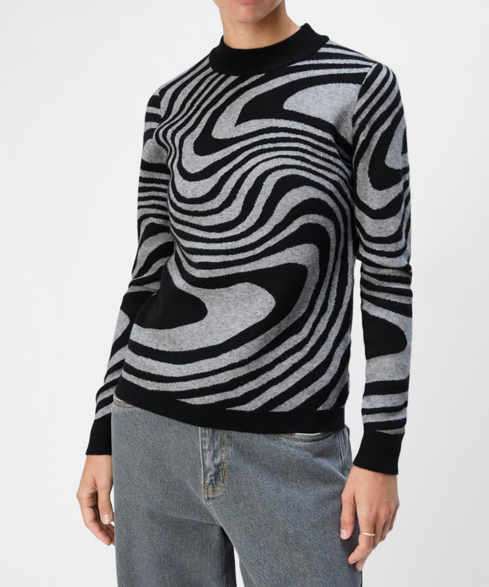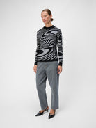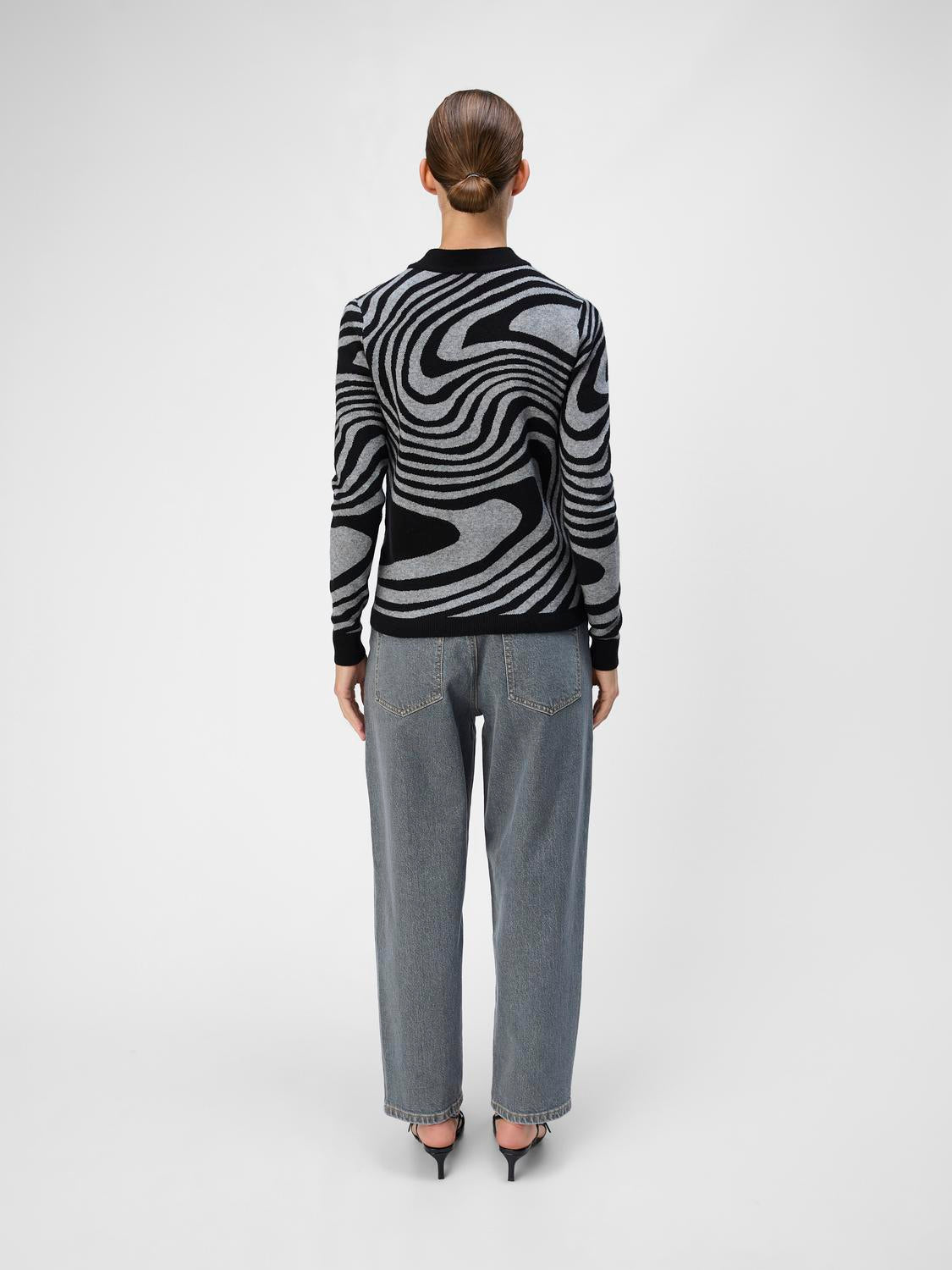 Object Ray LS Knit Strik Black/Medium Grey Melange