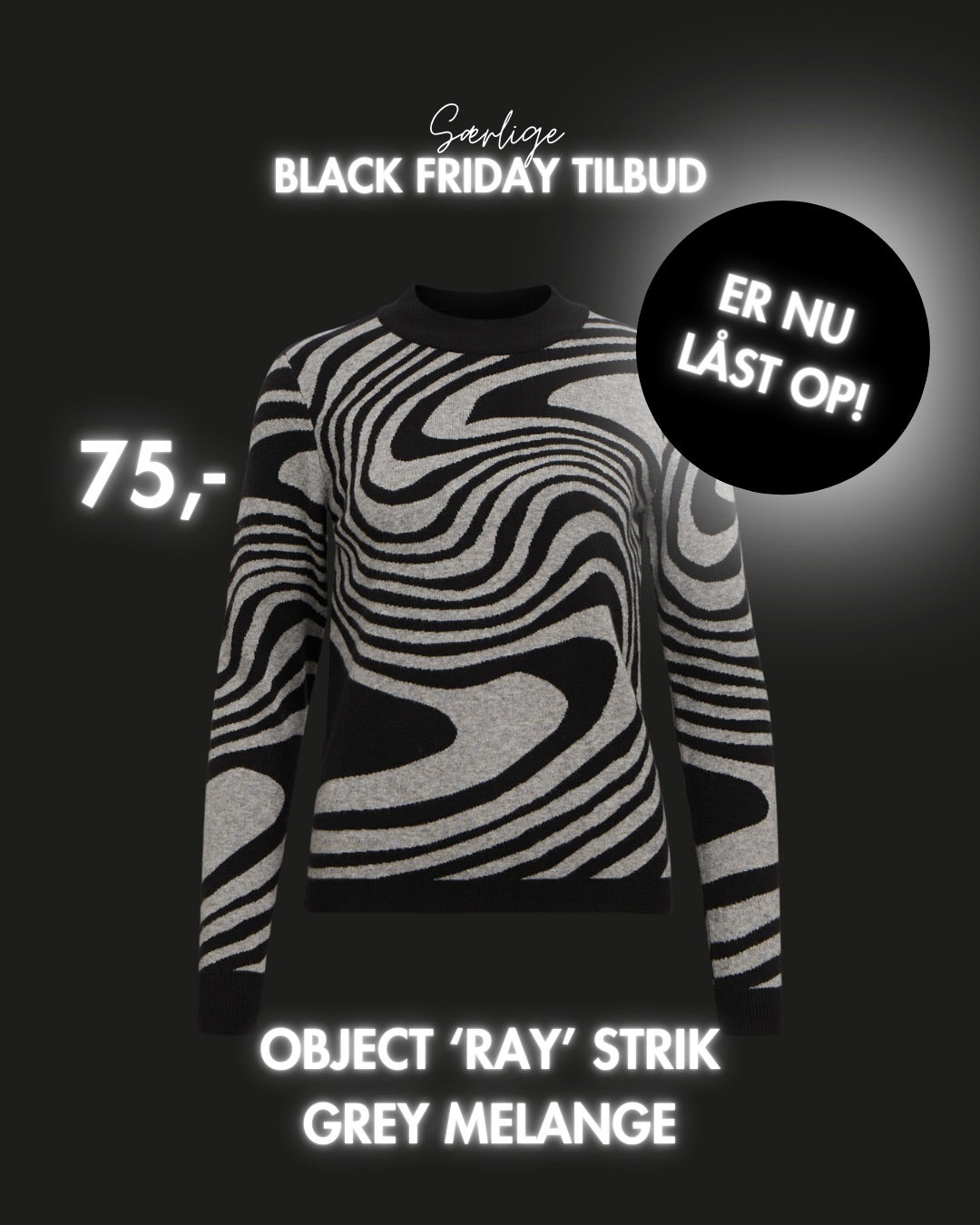 Ray LS Knit Strik Black/Medium Grey Melange fra Object