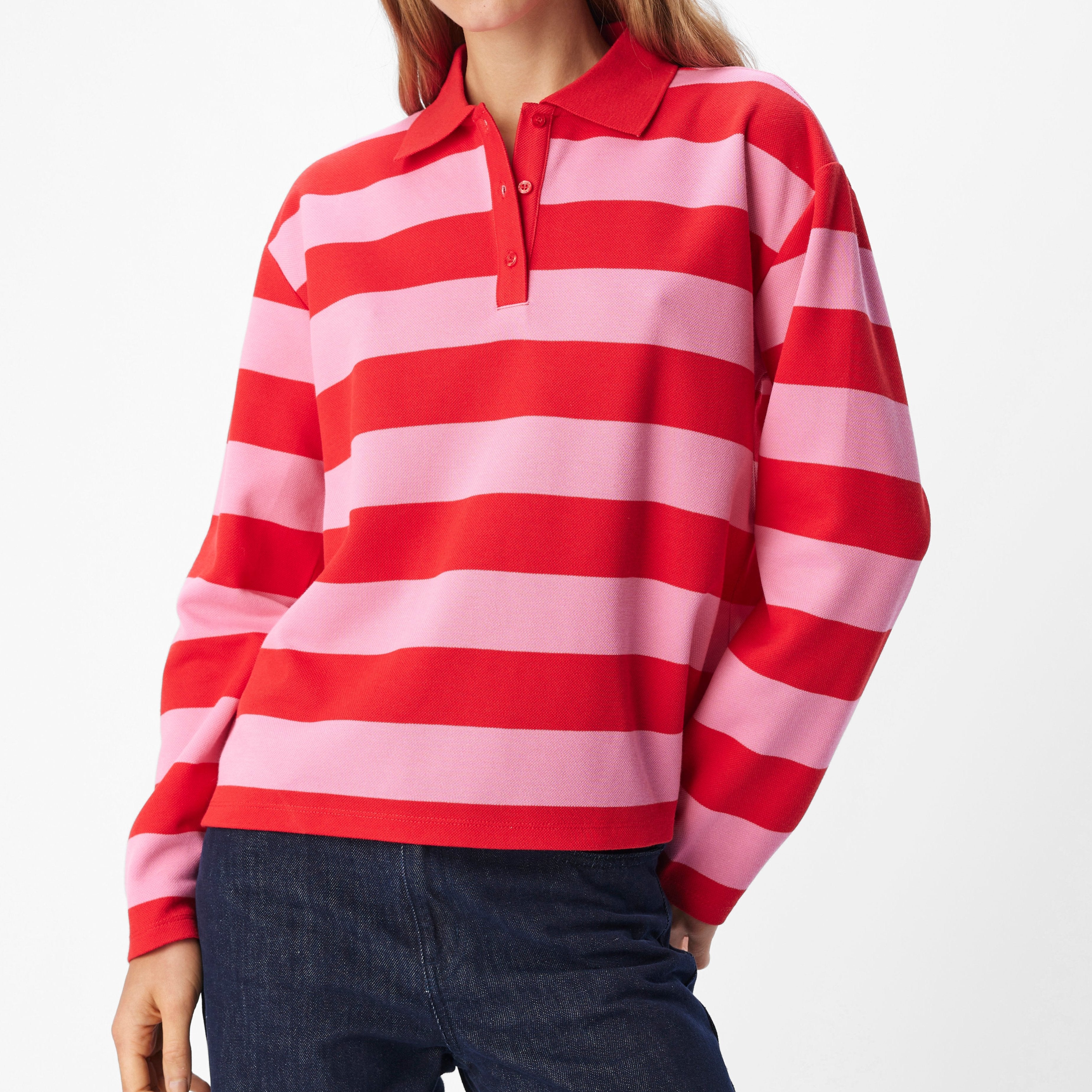 Millie LS Polo Bluse Flame Scarlet/Pink fra Object