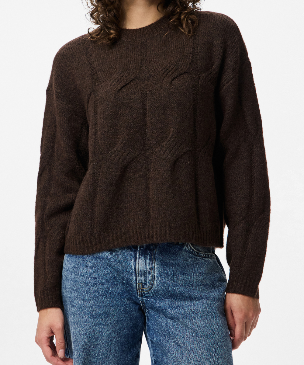 Pieces Jenna LS O-Neck Cable Strik Hot Fudge NOA25