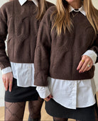 Jenna LS O-Neck Cable Strik Hot Fudge fra Pieces