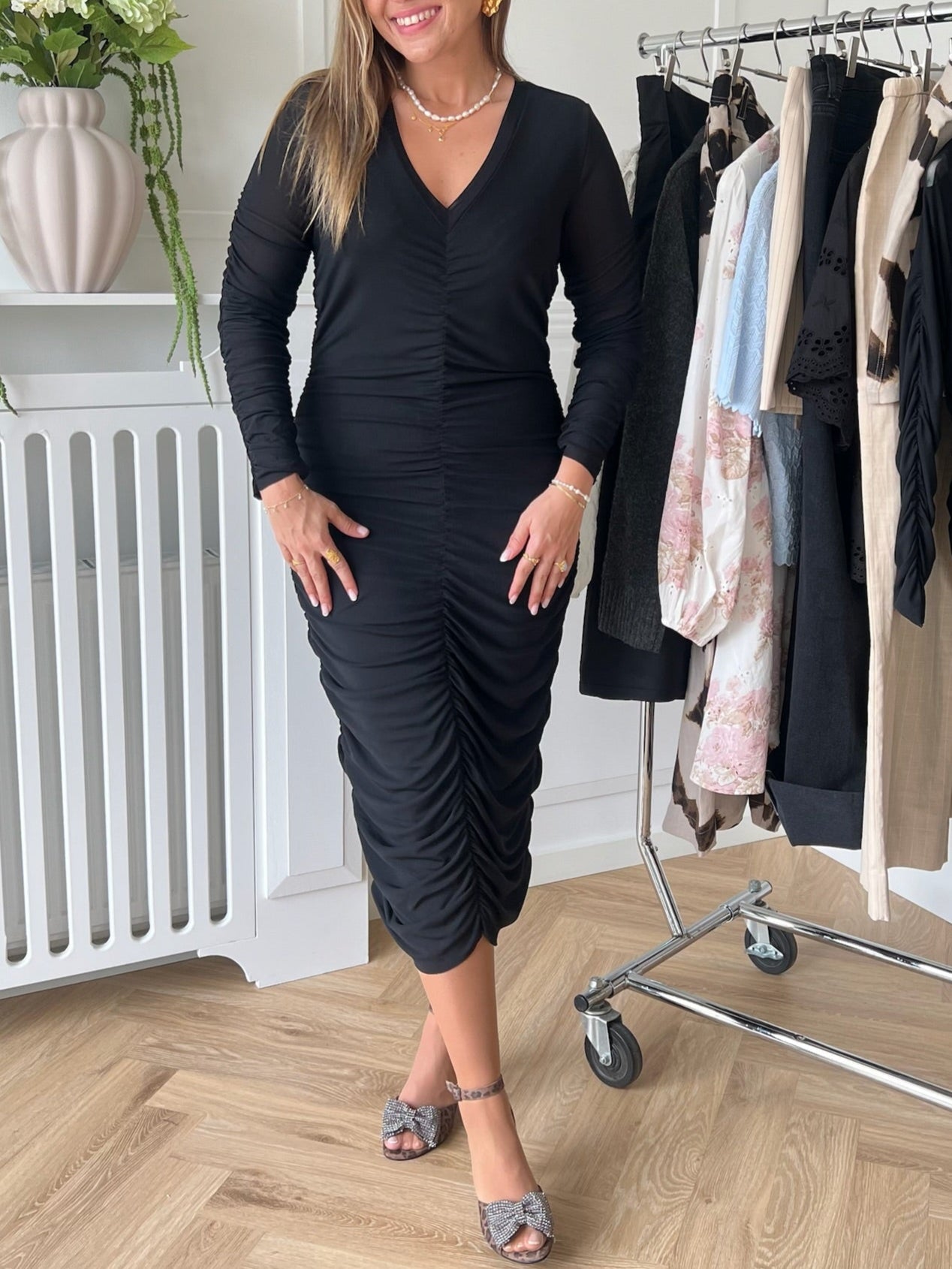 Reagan Ruched Mesh Kjole Black fra Co'Couture
