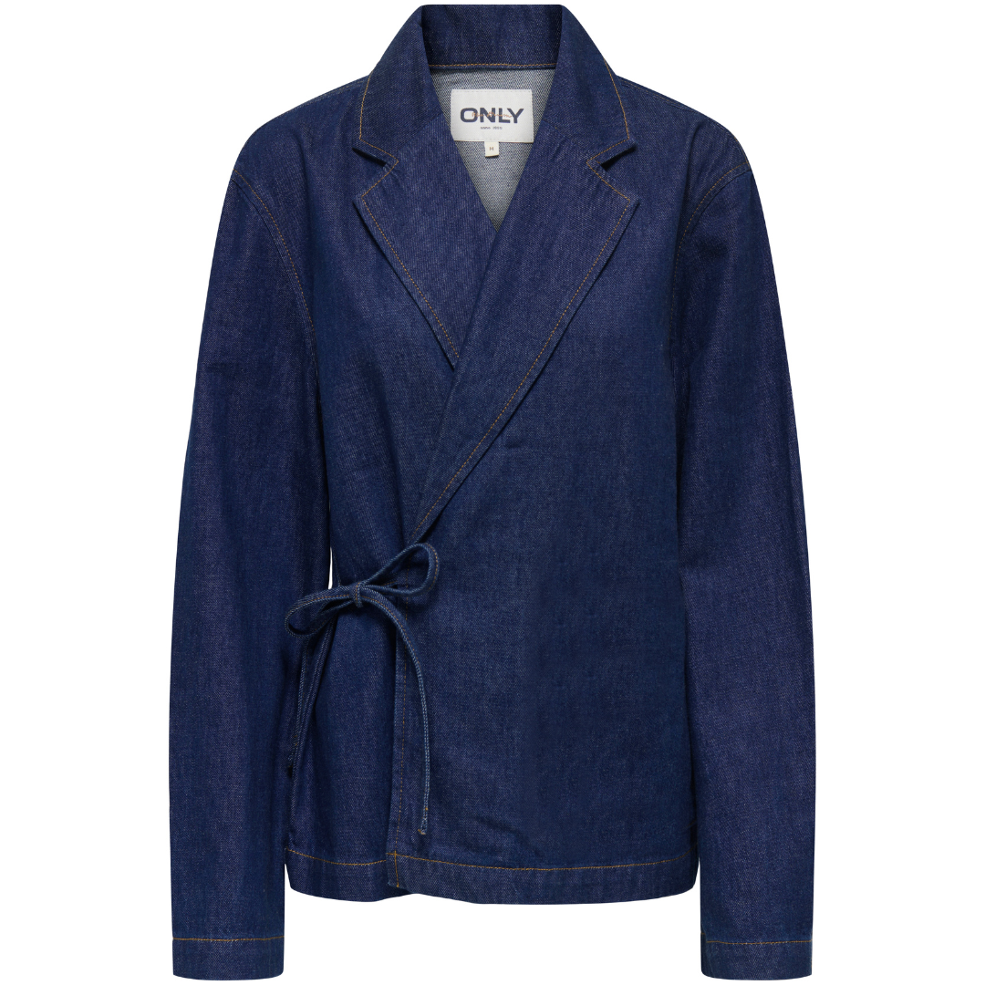 Ellis LS Denim Bow Tie Jakke Dark Blue Denim fra Only