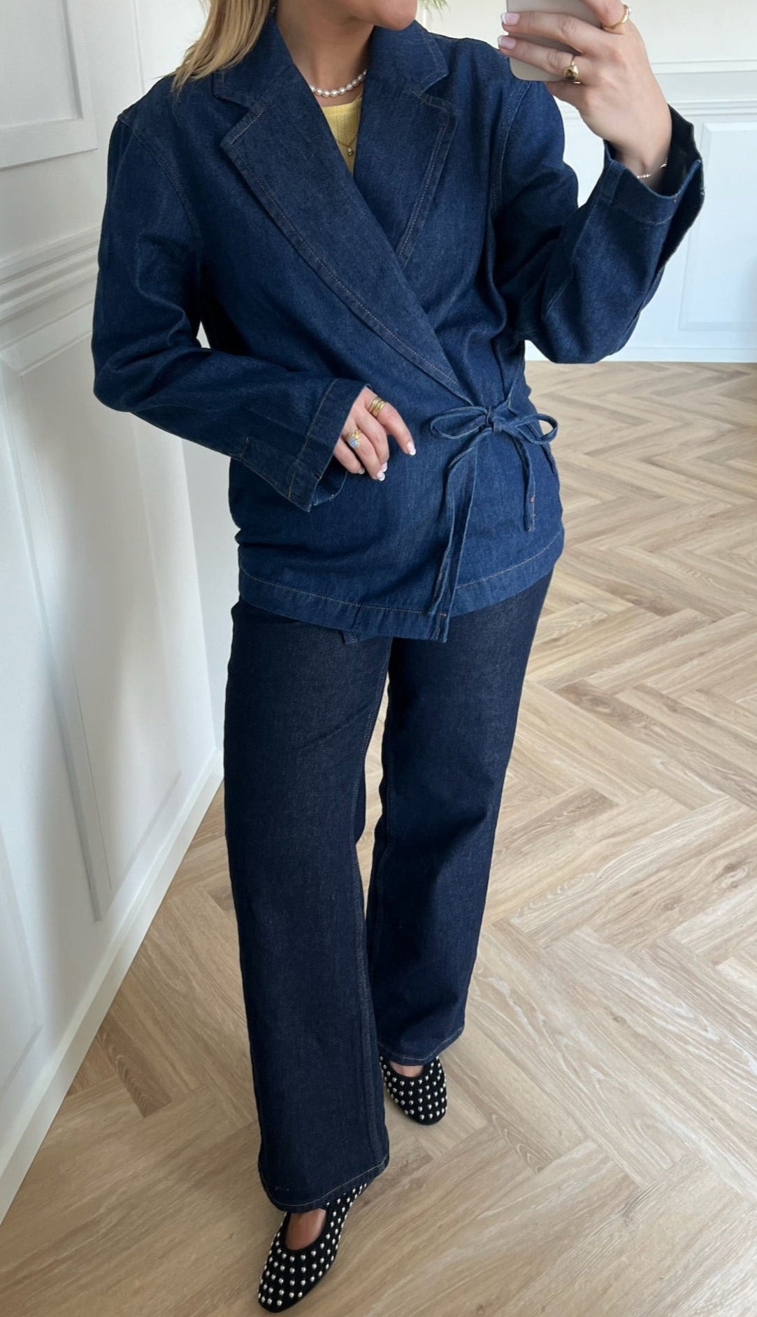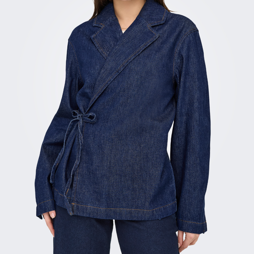 Only Ellis LS Denim Bow Tie Jakke Dark Blue Denim