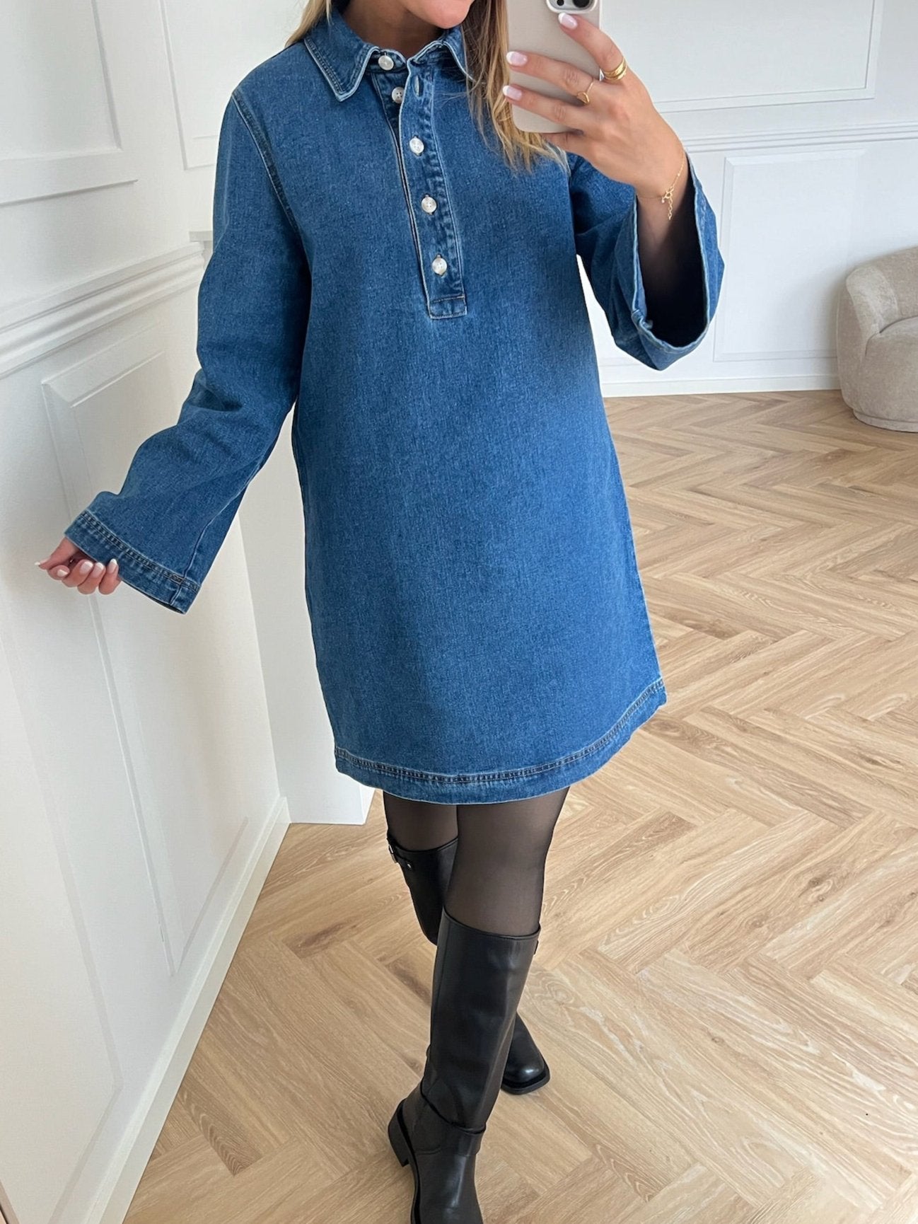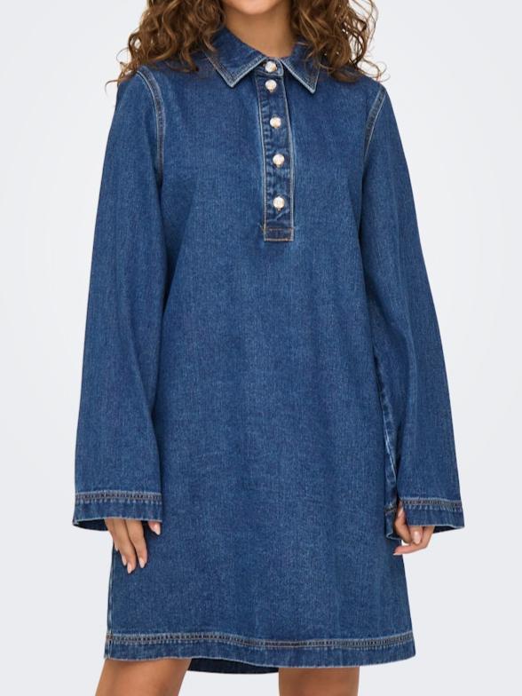 Freya LS Bell Kjole Medium Blue Denim fra Only
