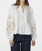 Neo Noir Ginia Emb Bluse Navy Neo Noir Ginia Emb Bluse Off White