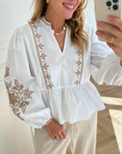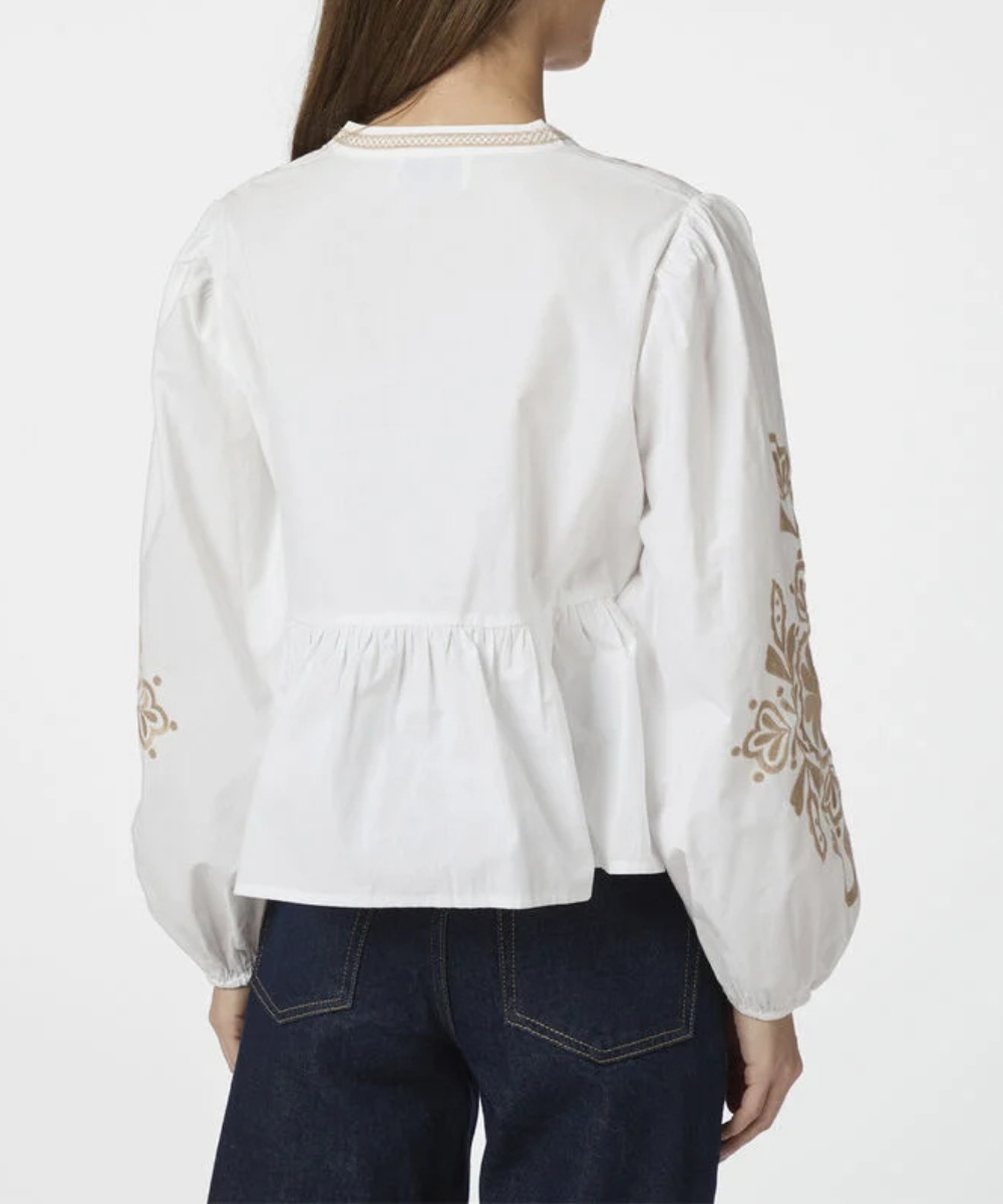 • Feminin skjorte i fin bomulds kvalitet. Blusen har broderet detaljer, samt vidde i ærmerne.