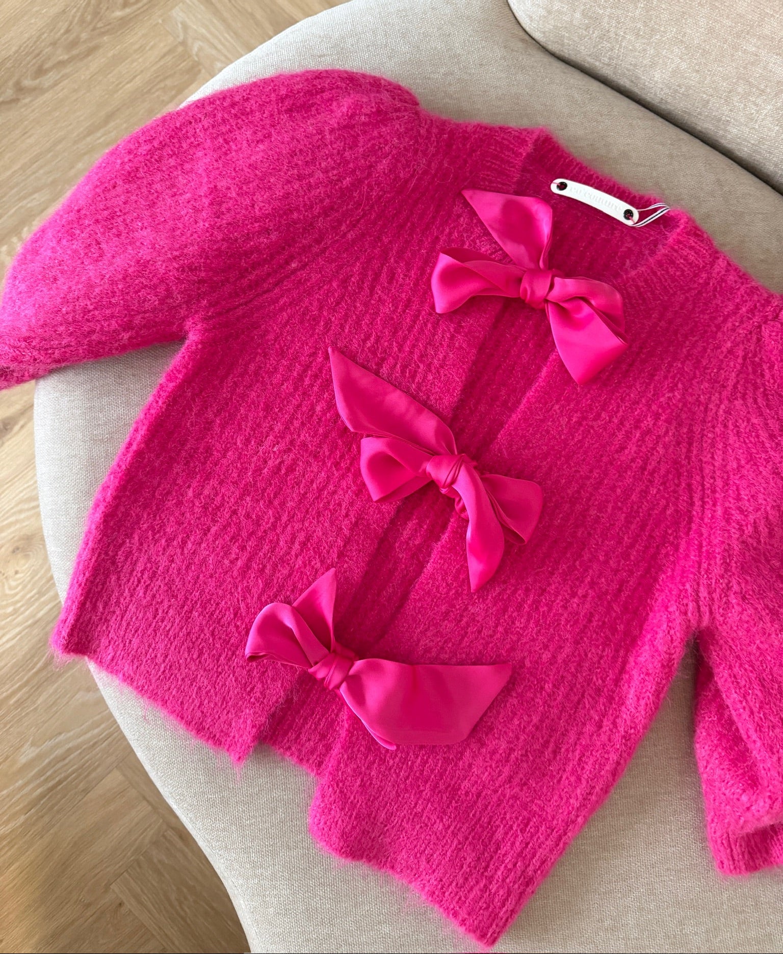Coralie Bow Rib Cardigan Flash Pink fra Co'Couture