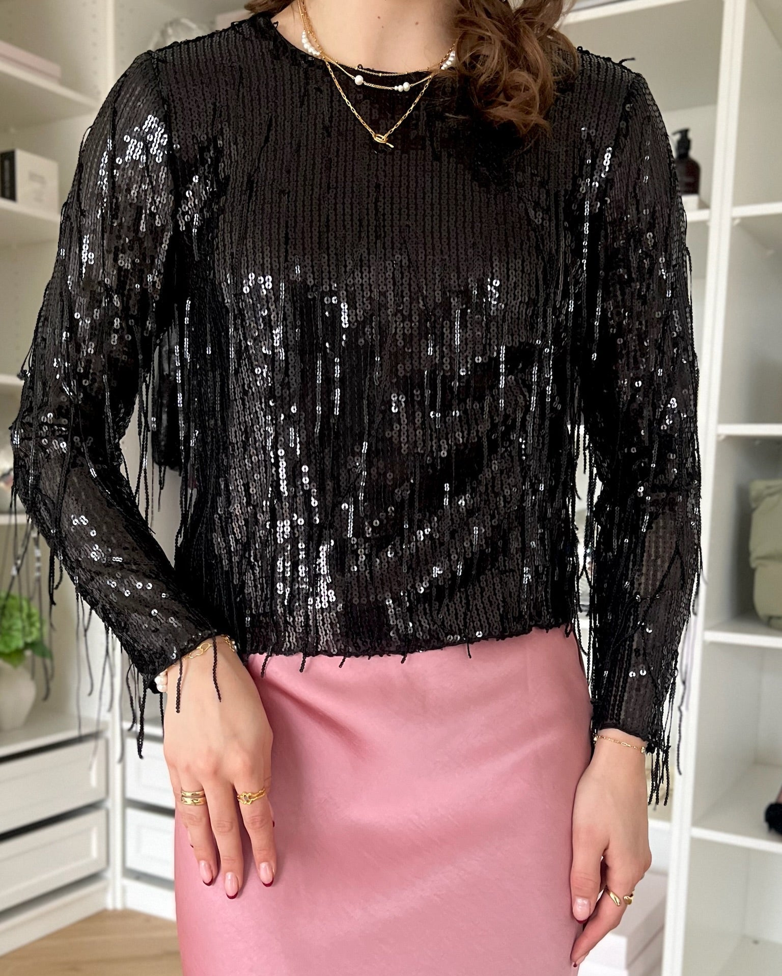 Maddox Sequin Crop Bluse Black fra Co'Couture