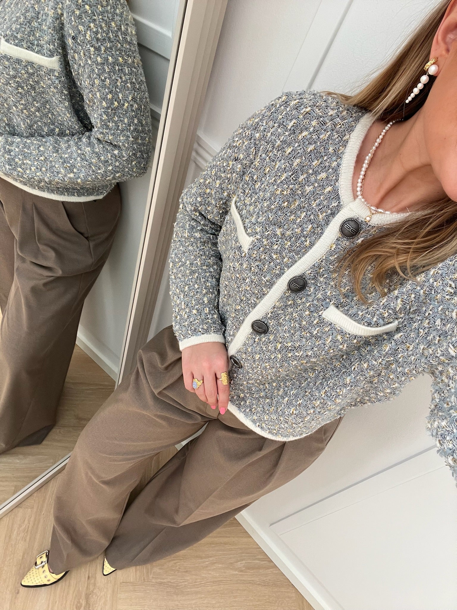 Nalin Cardigan Blue/White Structure fra Gestuz
