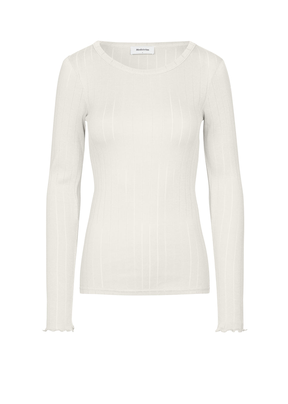 Issy bluse fra Modström er en skøn og virkelig behagelig basis bluse, som kan styles til mange ting. Den har hulmønster, fine flæsekanter og rund hals.