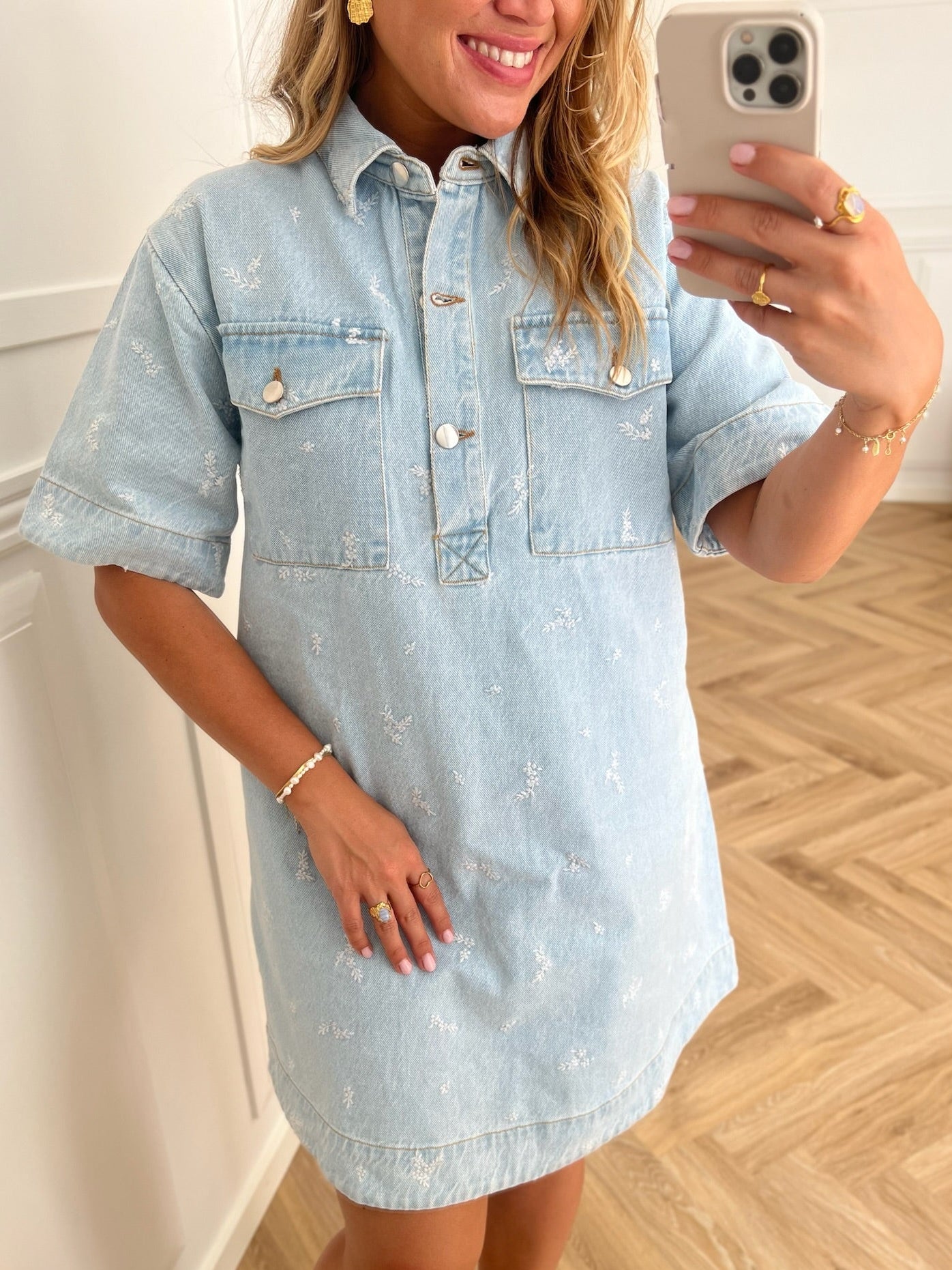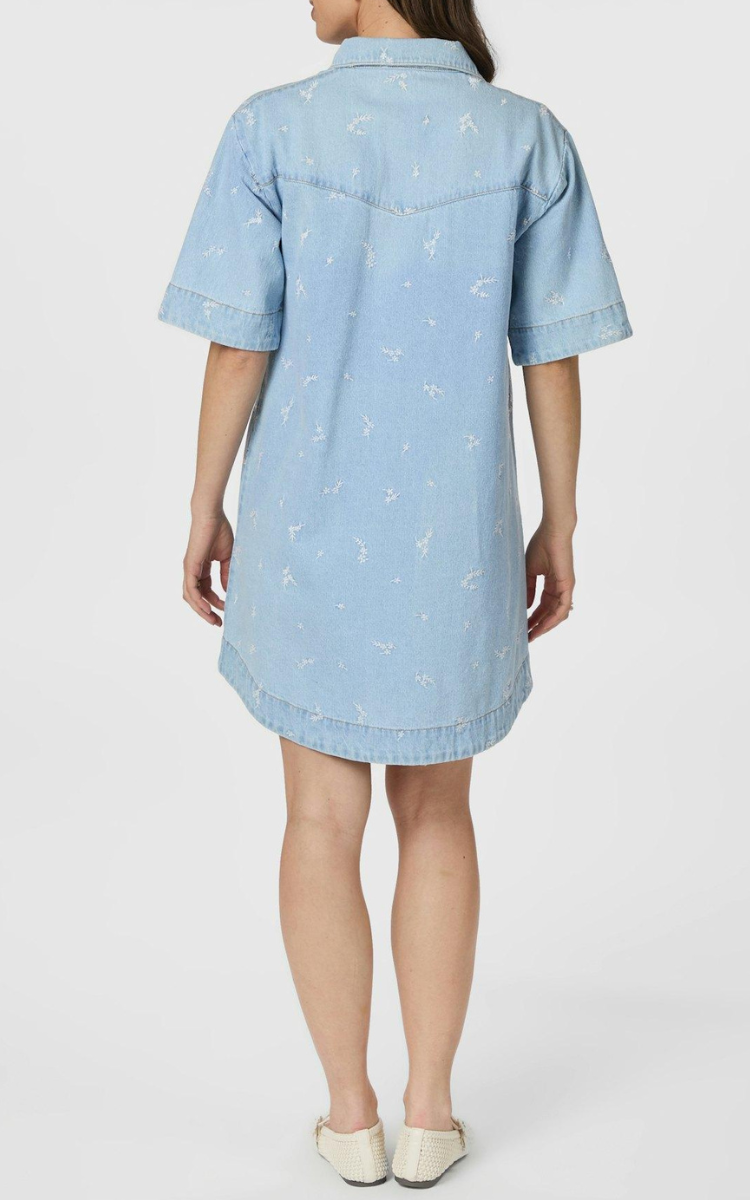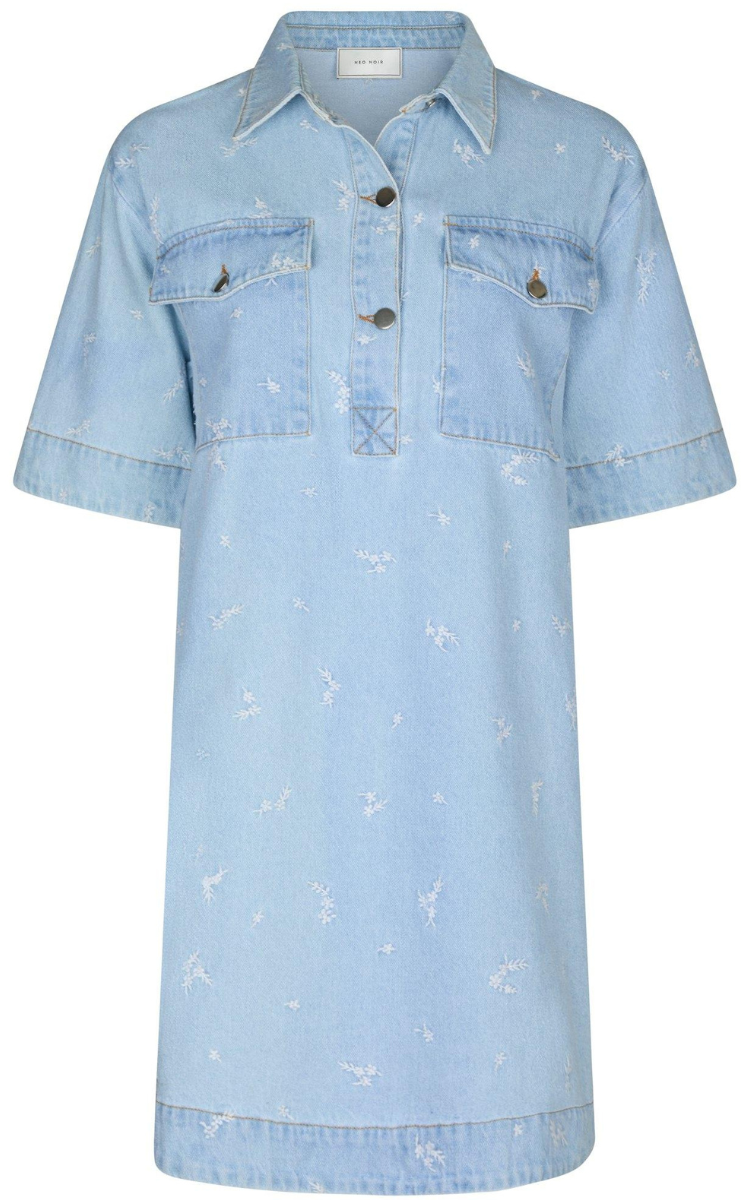 Saras Denim Emb Kjole Light Blue fra Neo Noir