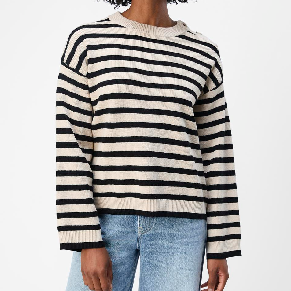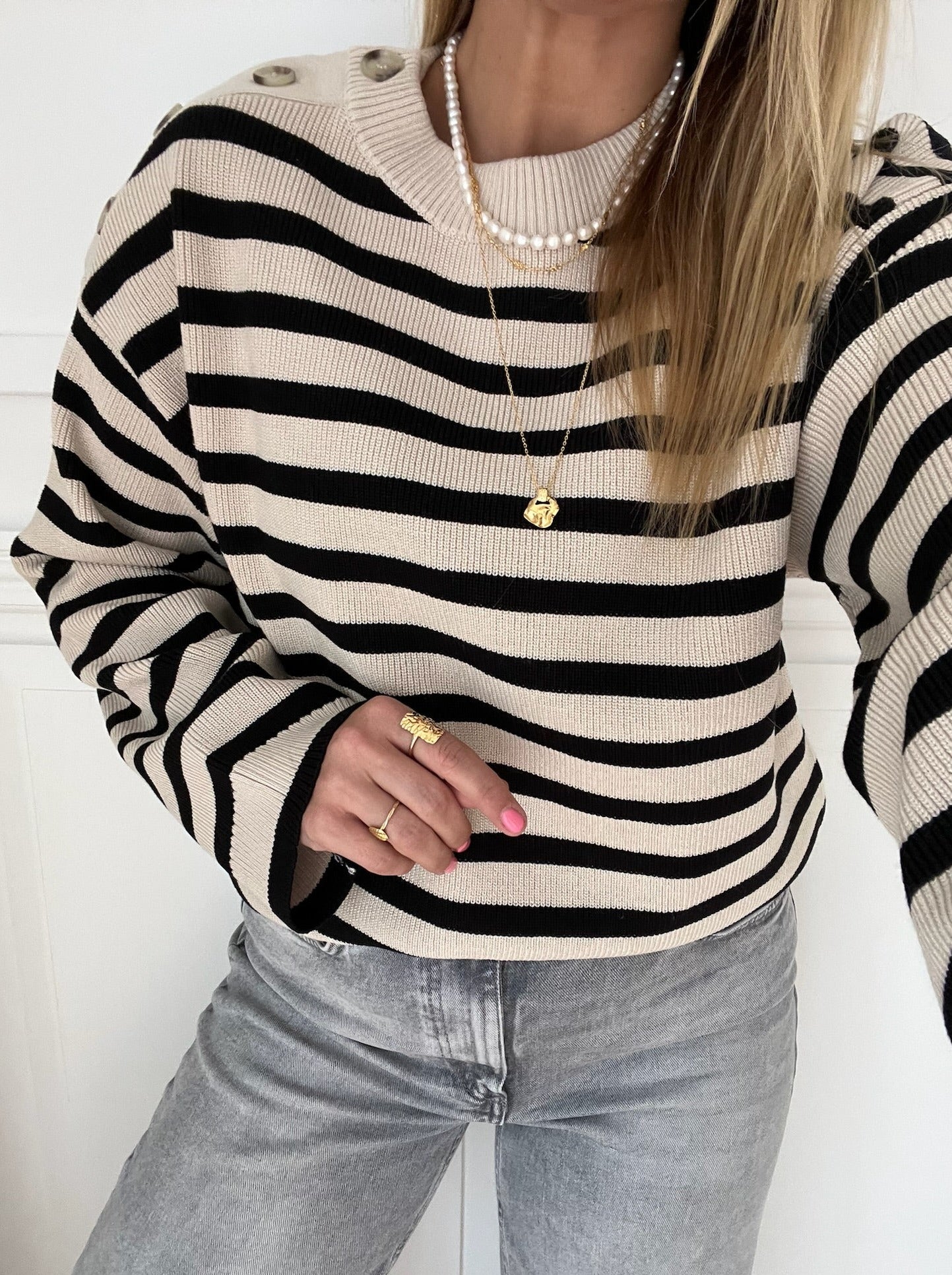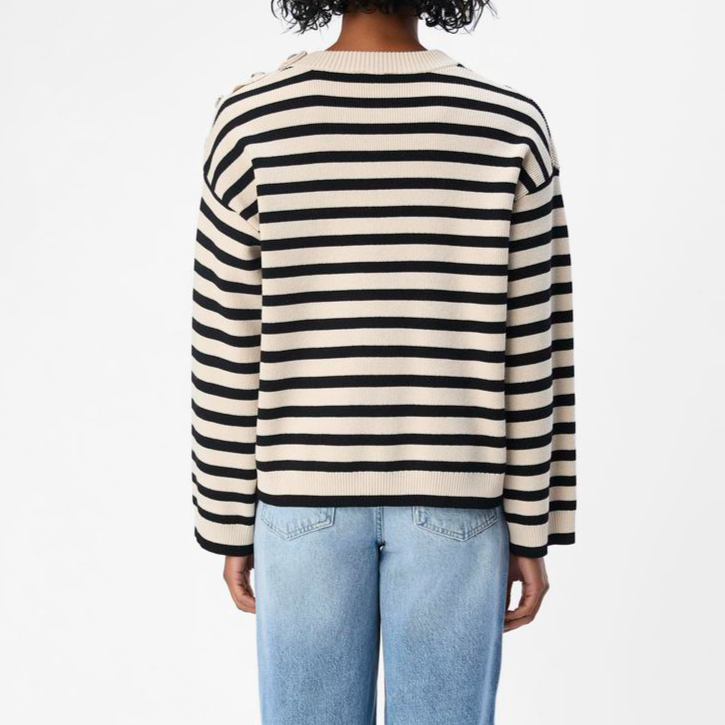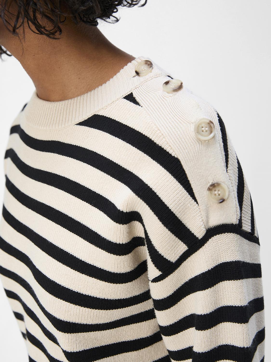 Elly LS Knit Pullover Sandshell/Black fra Object
