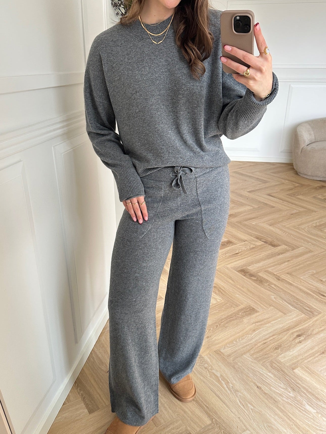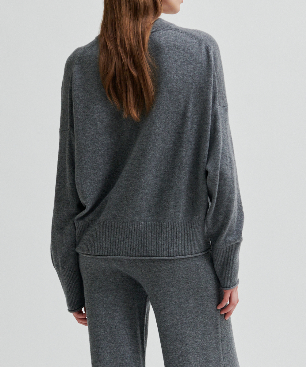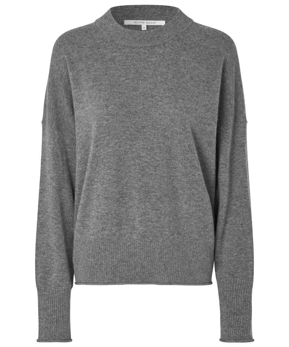 Calm Knit O-Neck Strik Grey Melange fra Second Female