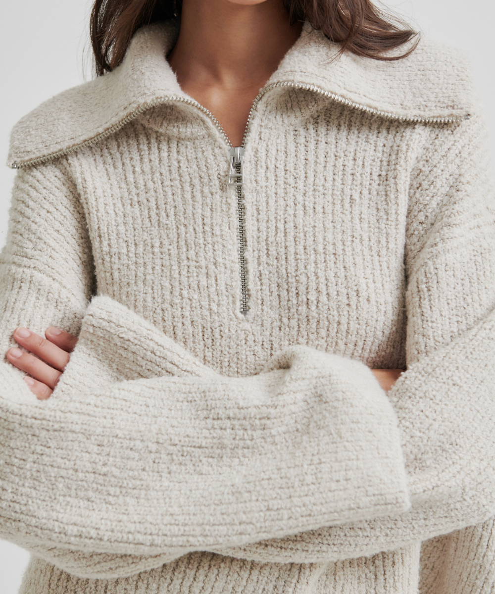 Second Female Gerda Knit Zip Collar Strik Summer Sand