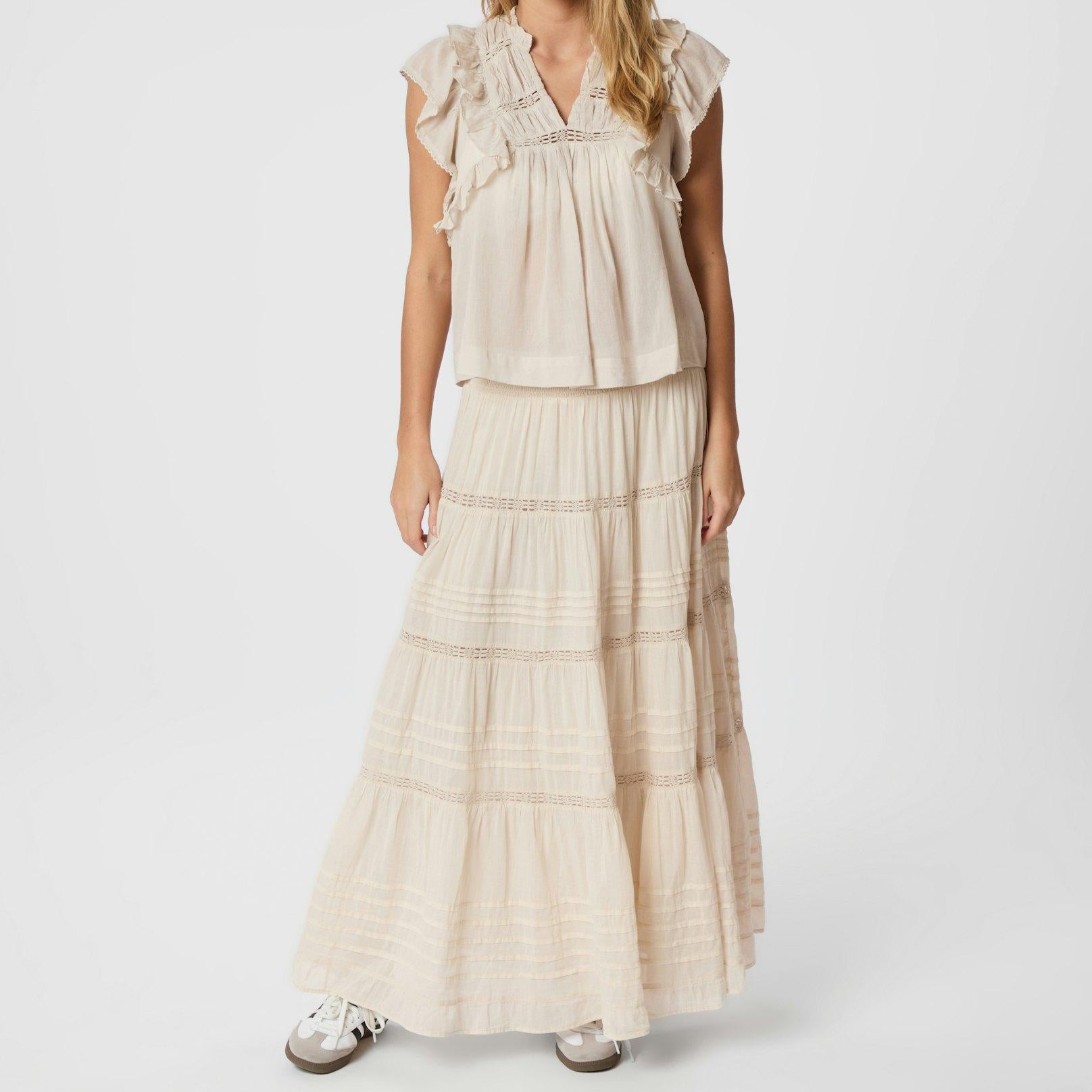Only Lele Capsl Frill Top Cloud Dancer/Kelp Flower