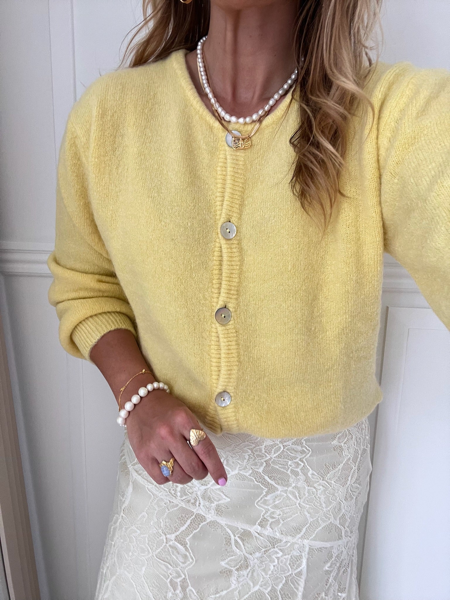 Bella Knit Cardigan Light Yellow fra Black Colour
