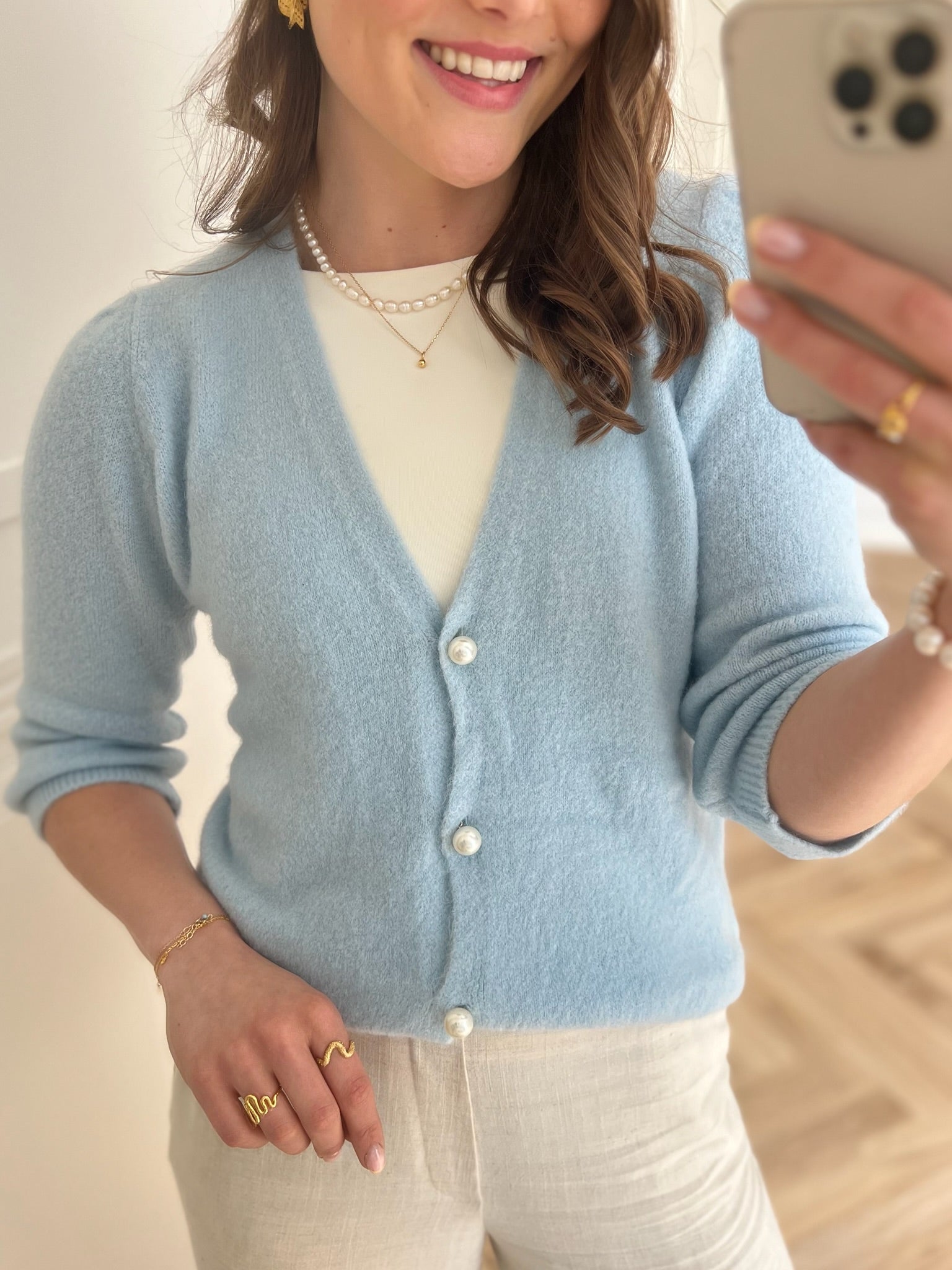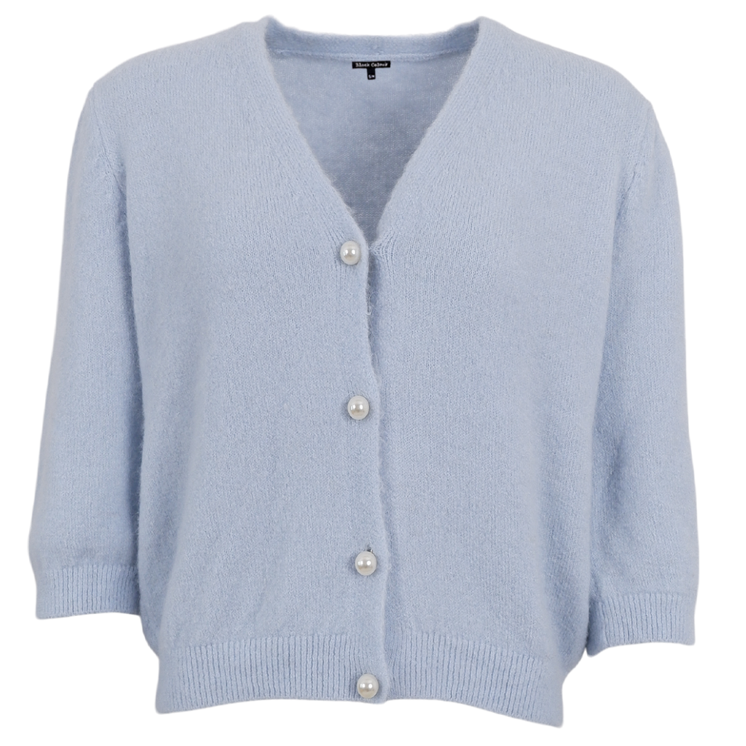 Black Colour Bella Pearl Knit Cardigan Light Blue