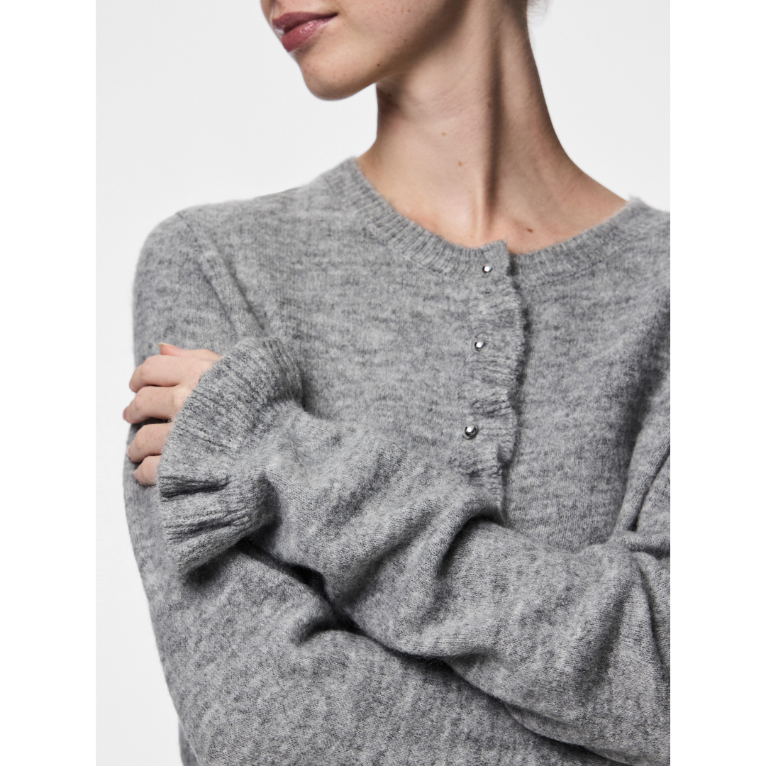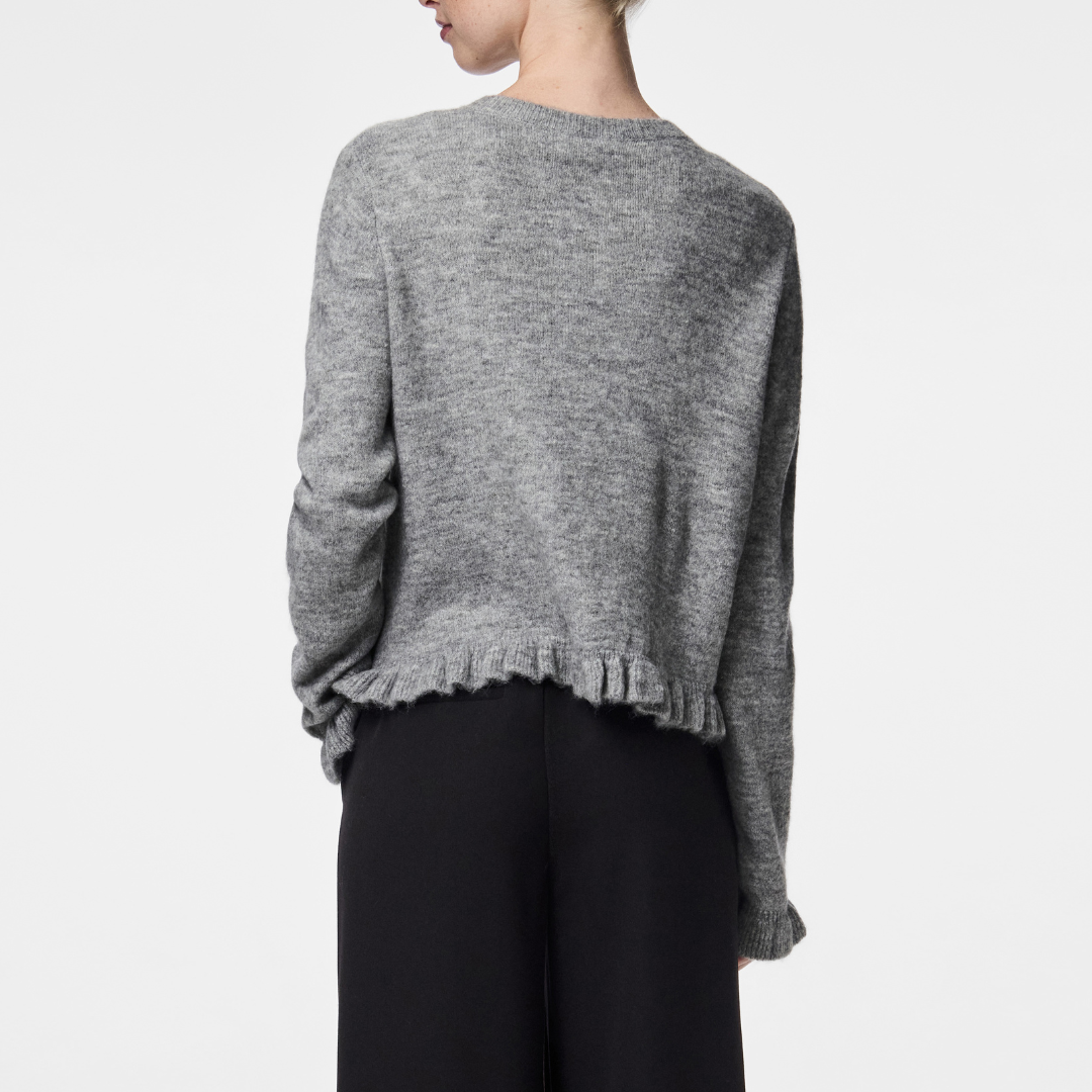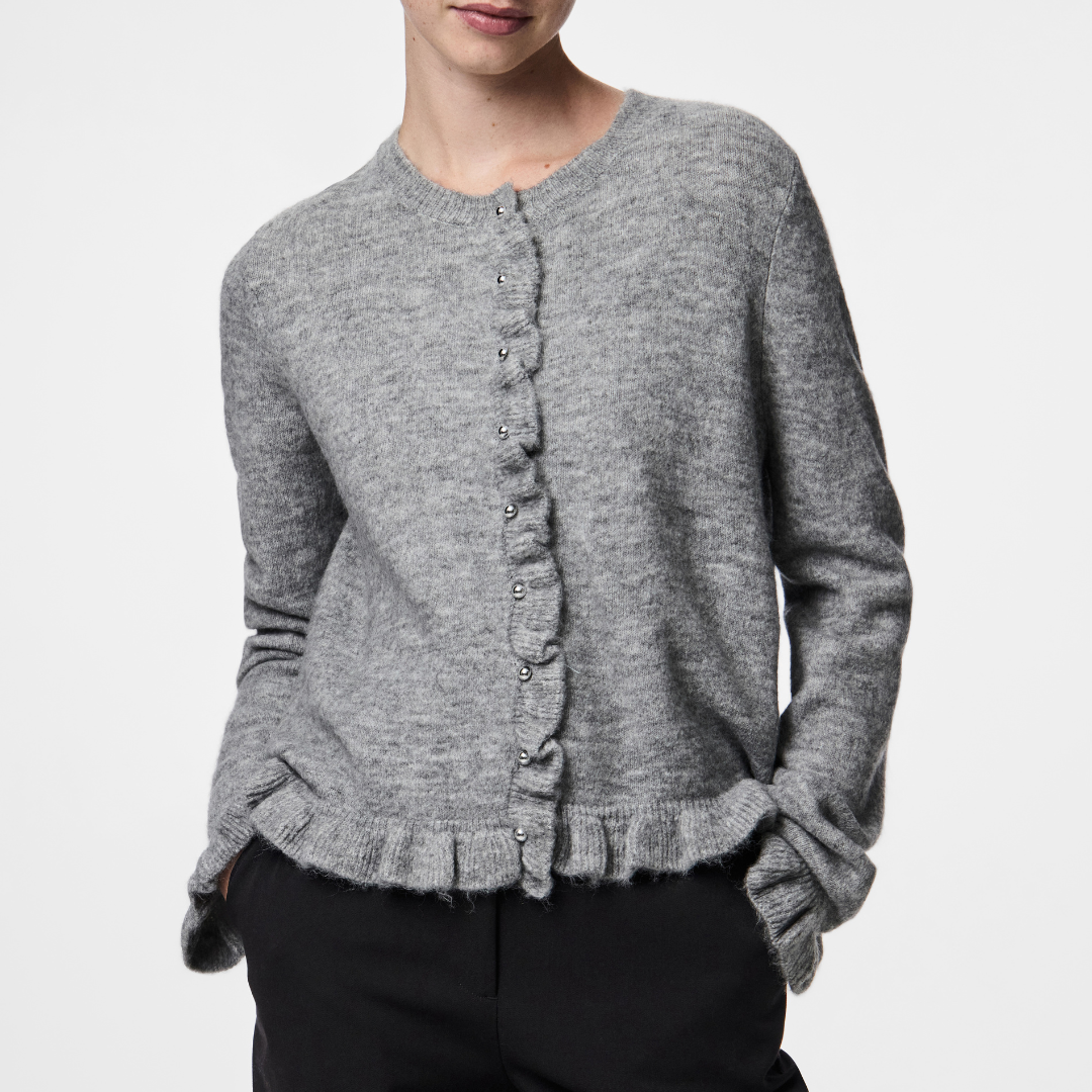 Pieces Lydia LS Frill Knit Cardigan Medium Grey Melange