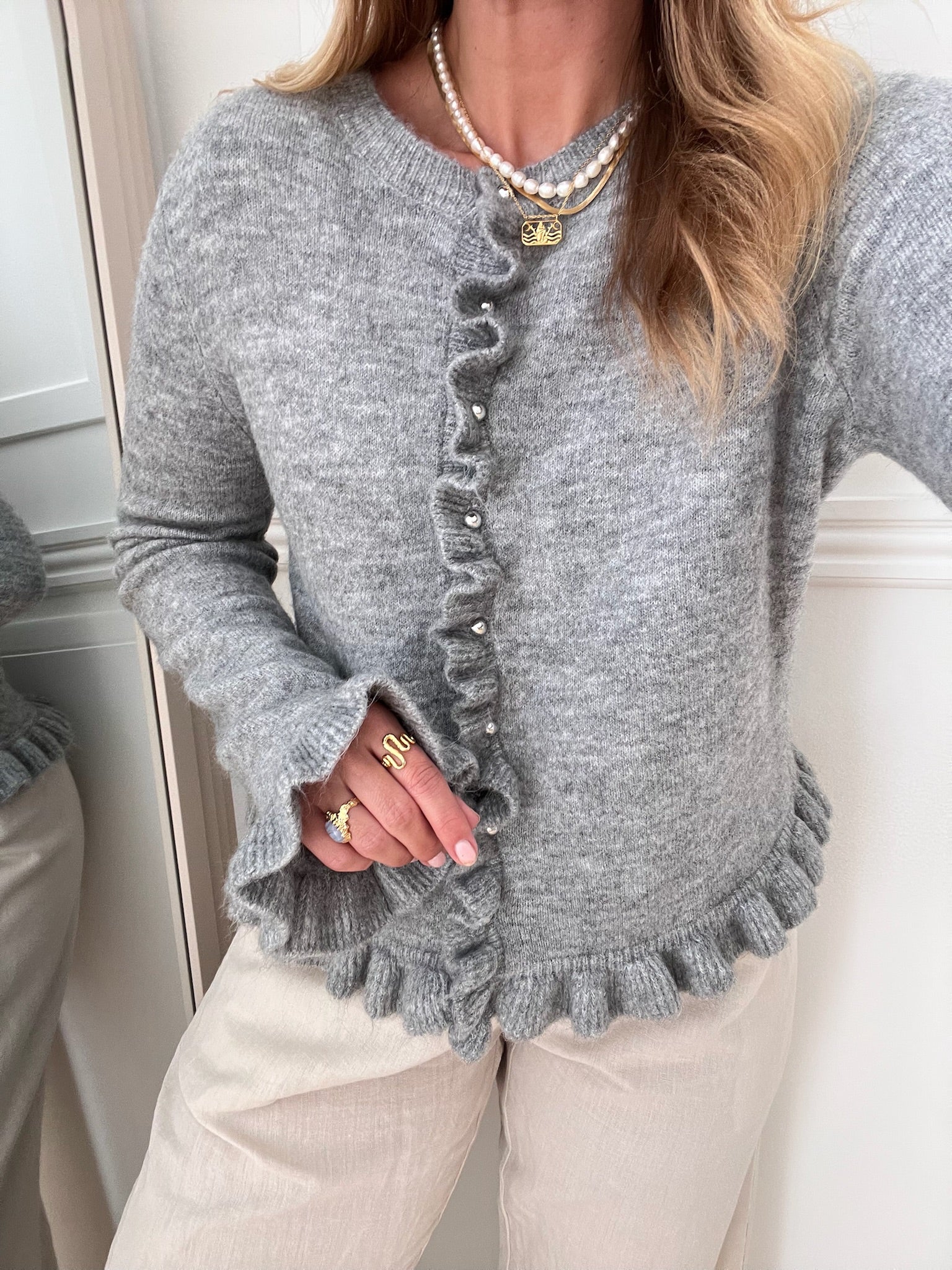 Lydia LS Frill Knit Cardigan Medium Grey Melange fra Pieces