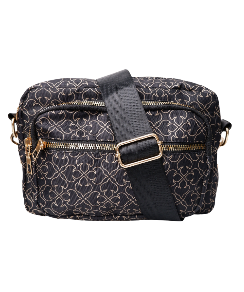 Black Colour Vanda Printed Crossover Taske Black Deco