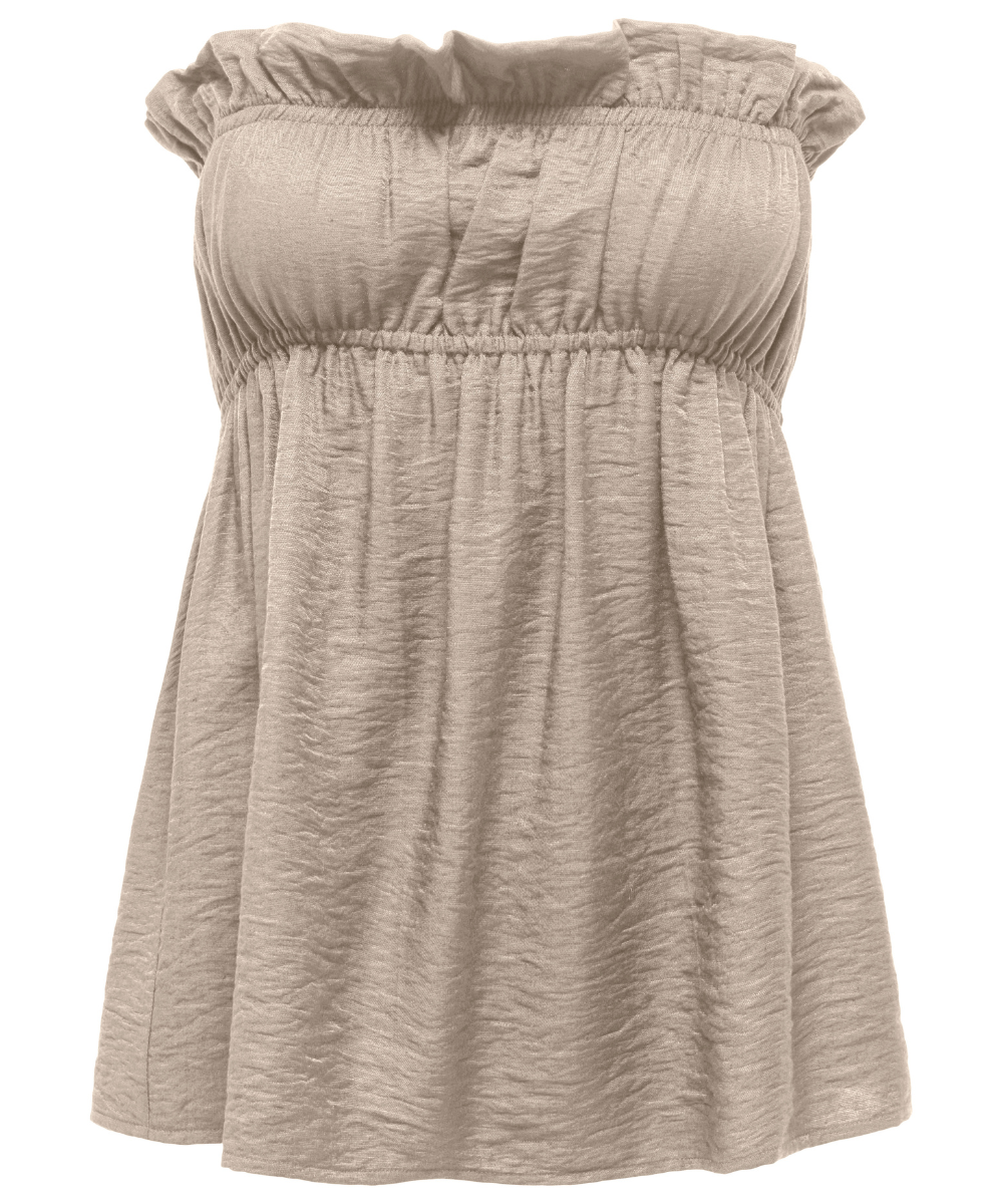 Only Lino Ruffle Bandeau Top Oxford Tan