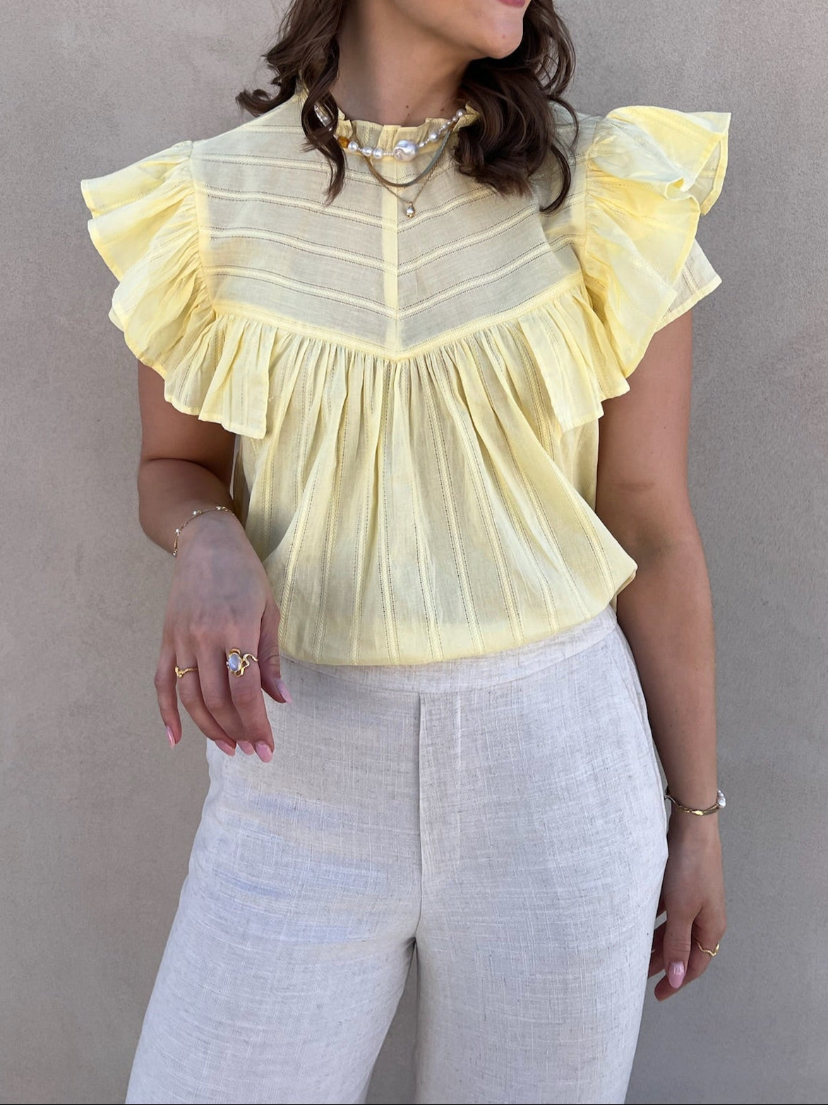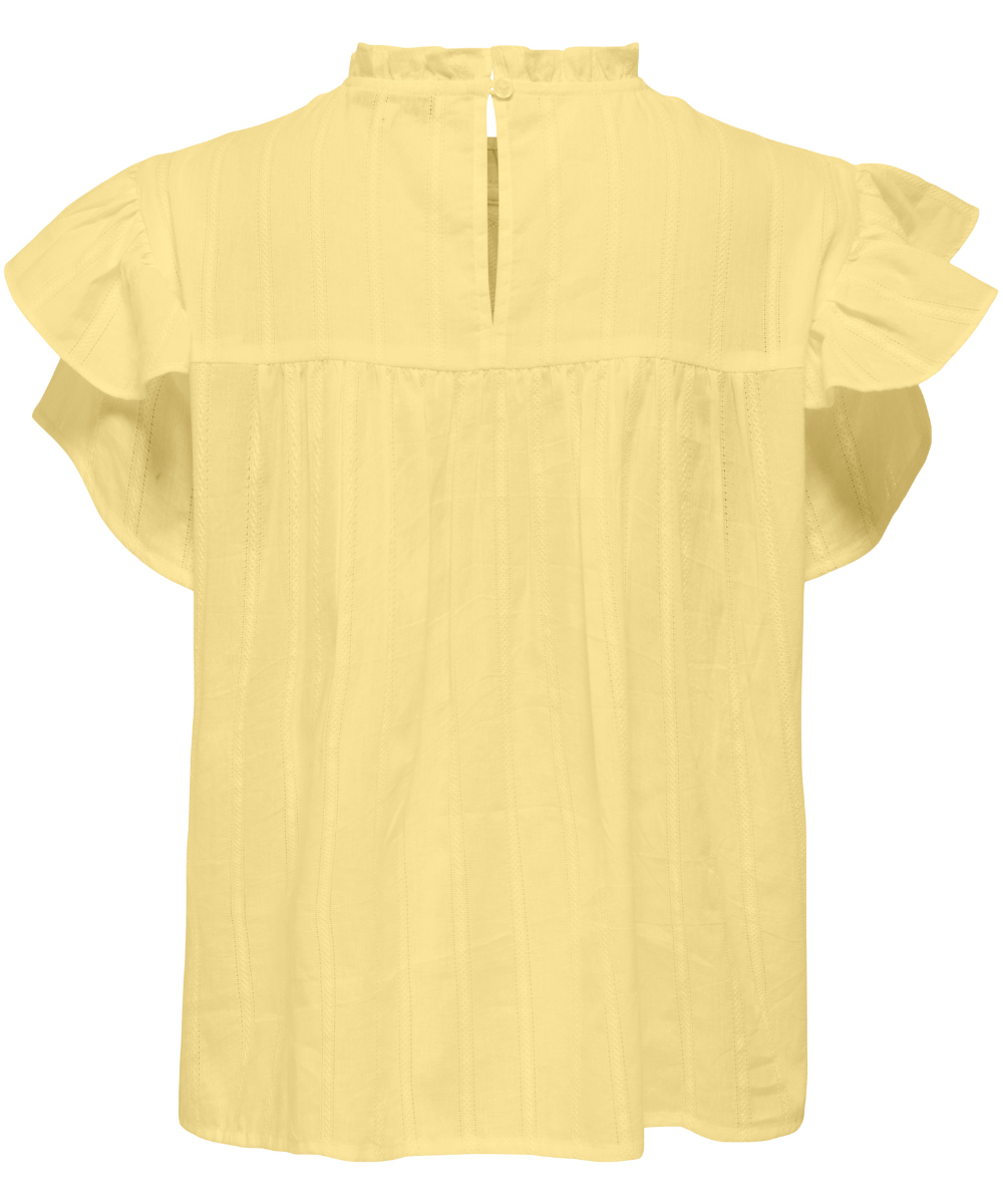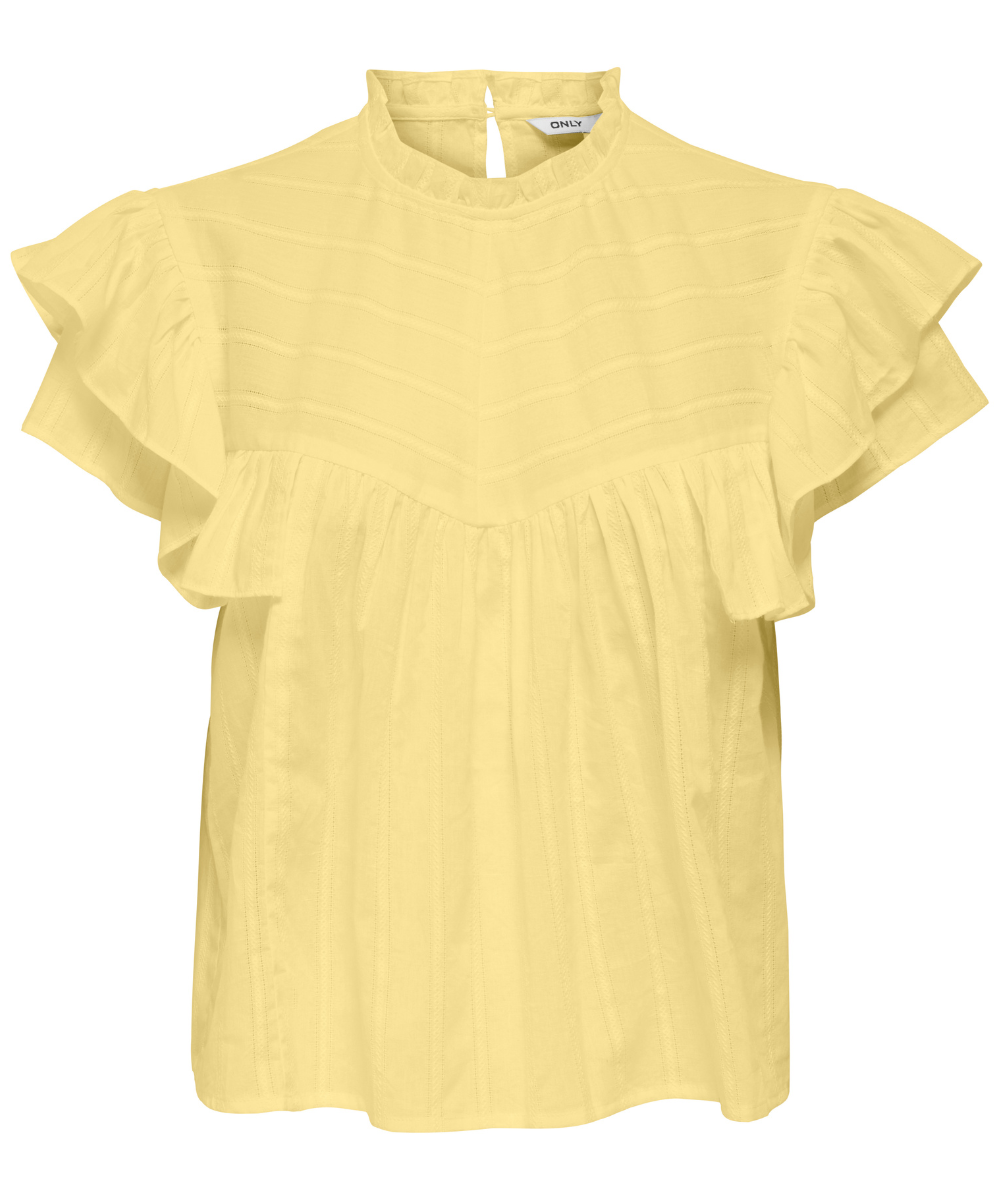 Only Heike SL Frill O-Neck Top Lemon Merinque