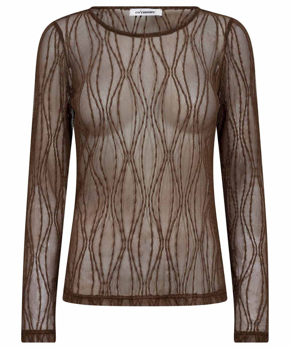 Marcy Mesh O Bluse Mocca fra Co'Couture
