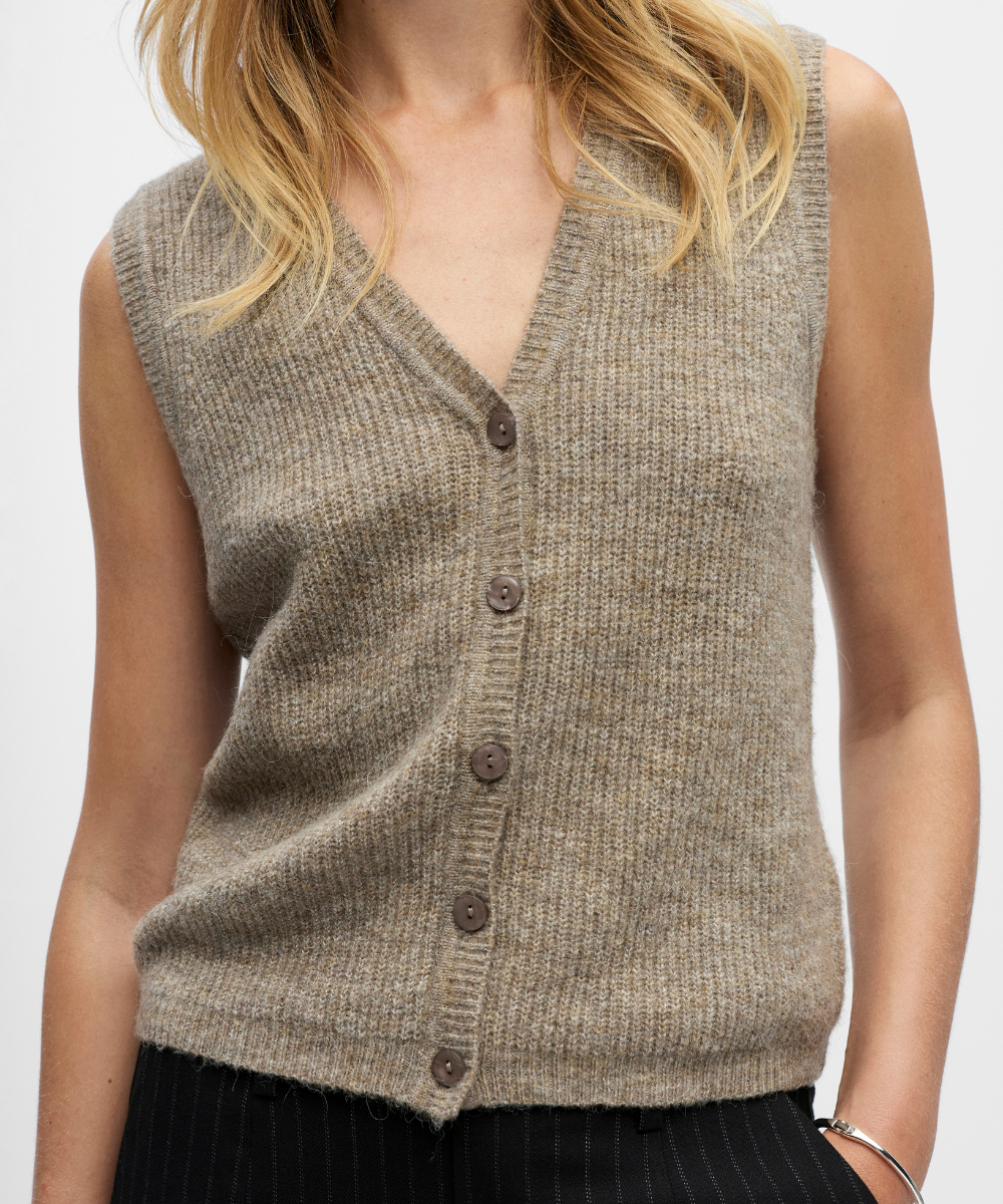 Diana V-Neck Knit Vest Morel/Melange fra Object