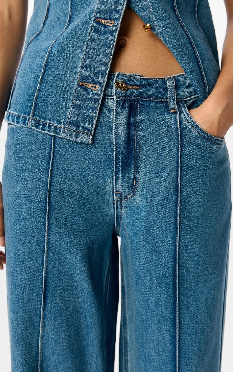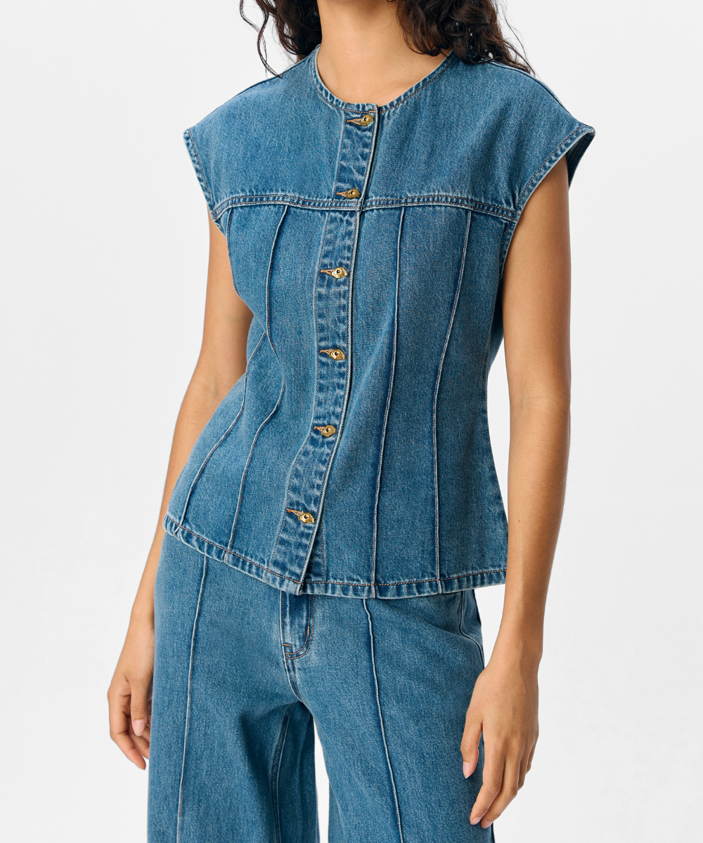 Divona Denim SL Vest Medium Blue Denim fra Object