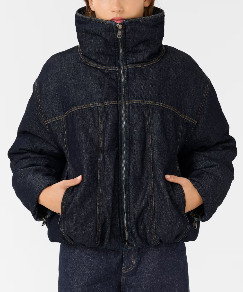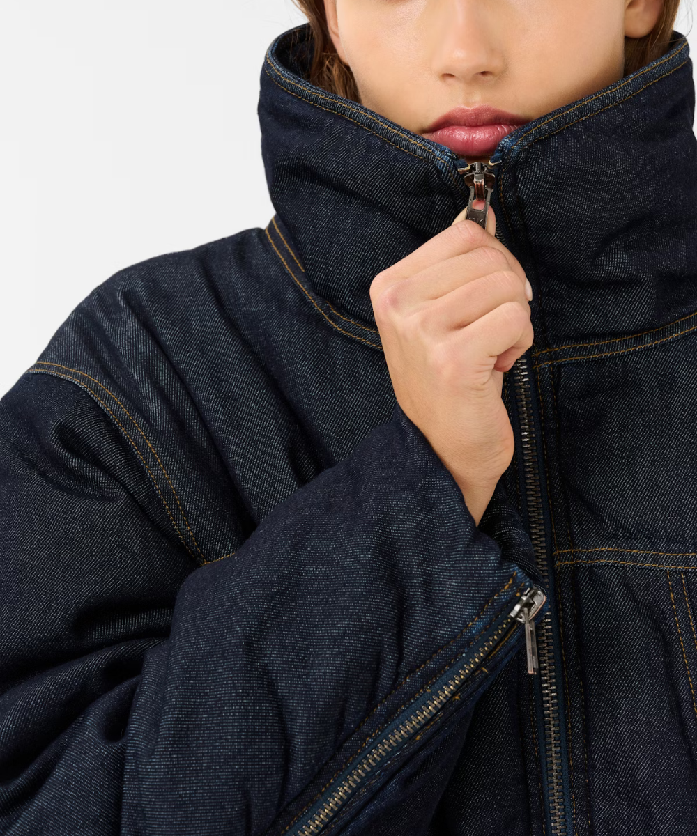 Rinova Puffer Jakke Dark Blue Unwashed fra Gestuz