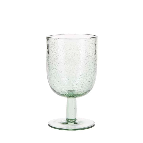 Skønt vinglas med fine detaljer, som gør hvert enkelt glas unikt. Glasset er i en kraftig udforming med små luftbobler, hvilket udgør en flot og lidt rustik detalje. Denne udgave er i en smuk grøn og glasset findes også i andre farver her.