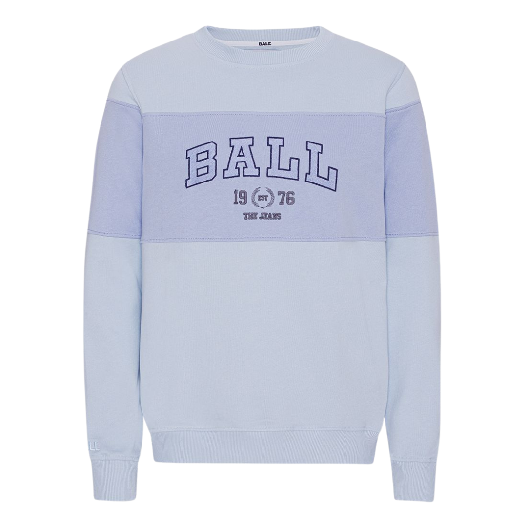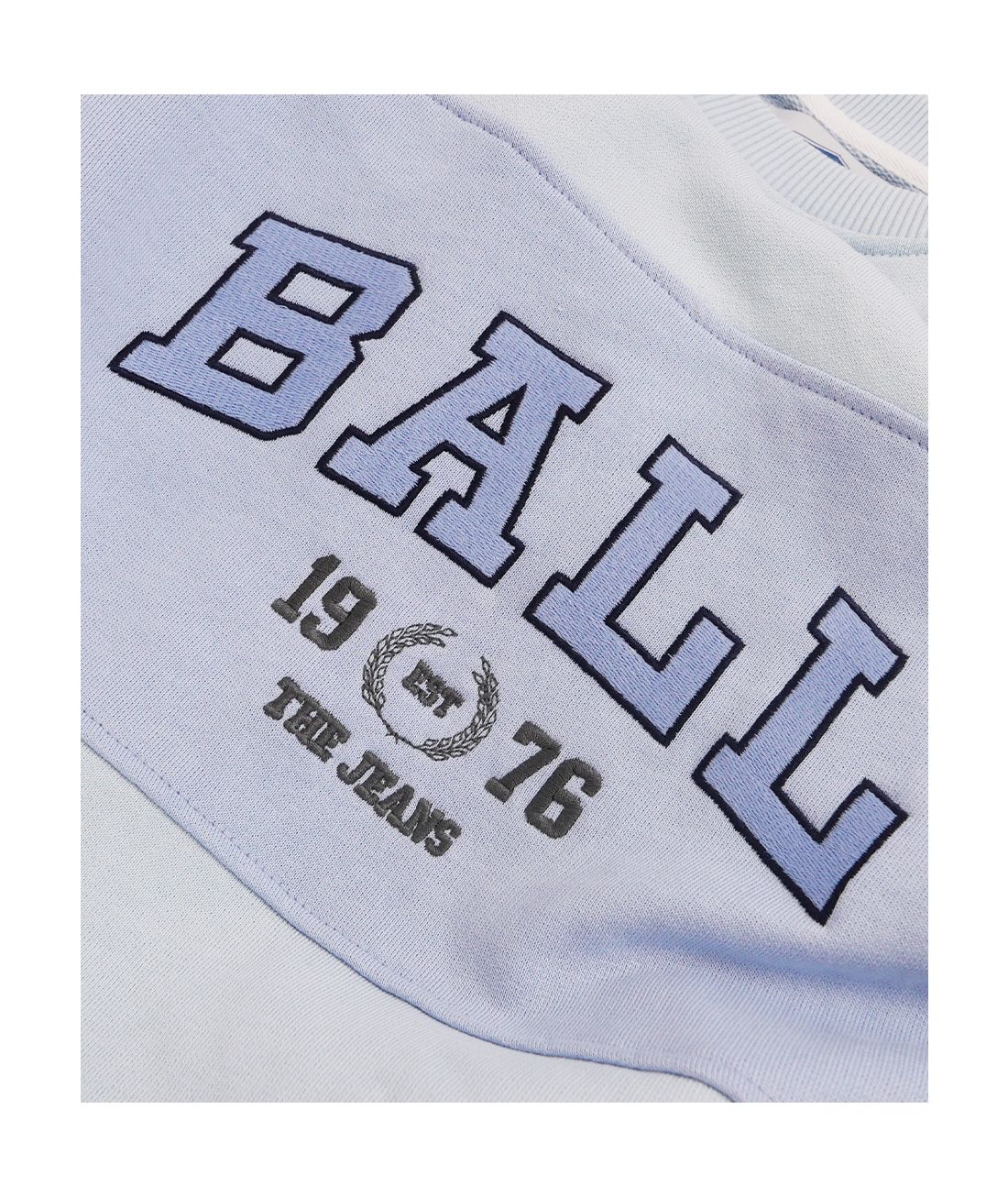 J. Montana er en super smart sweatshirt fra det populære Brand Ball. Denne udgave har en lækker, lyseblå farvekombination med en bred stribe henover brystet. Den har klassisk snit med lange ærmer, rund hals og rib-kanter. Som en sej detalje har den et stort, broderet logo på brystet. Modellen er oversized.