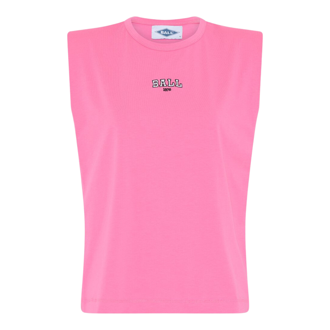 Sej top fra Ball med et cool retro-look. Toppen har løs pasform og rund hals. Derudover har den skulderpuder, hvilket giver den ekstra coolness og et retro-look. Toppen er pink med trykt Ball logo på brystet. Den er fremstillet i en blanding af bomuld og elastane og den er perfekt til hverdag.